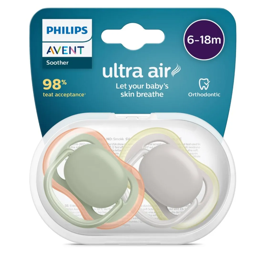 - Aceptados por el 98% de los recién nacidos. Preferidos por bebés de todo el mundo. Cuando preguntamos a las madres cómo reaccionaban sus bebés a las suaves tetinas de silicona, el 98% confirmó que los bebés aceptan los chupetes Ultra Air Philips Avent.