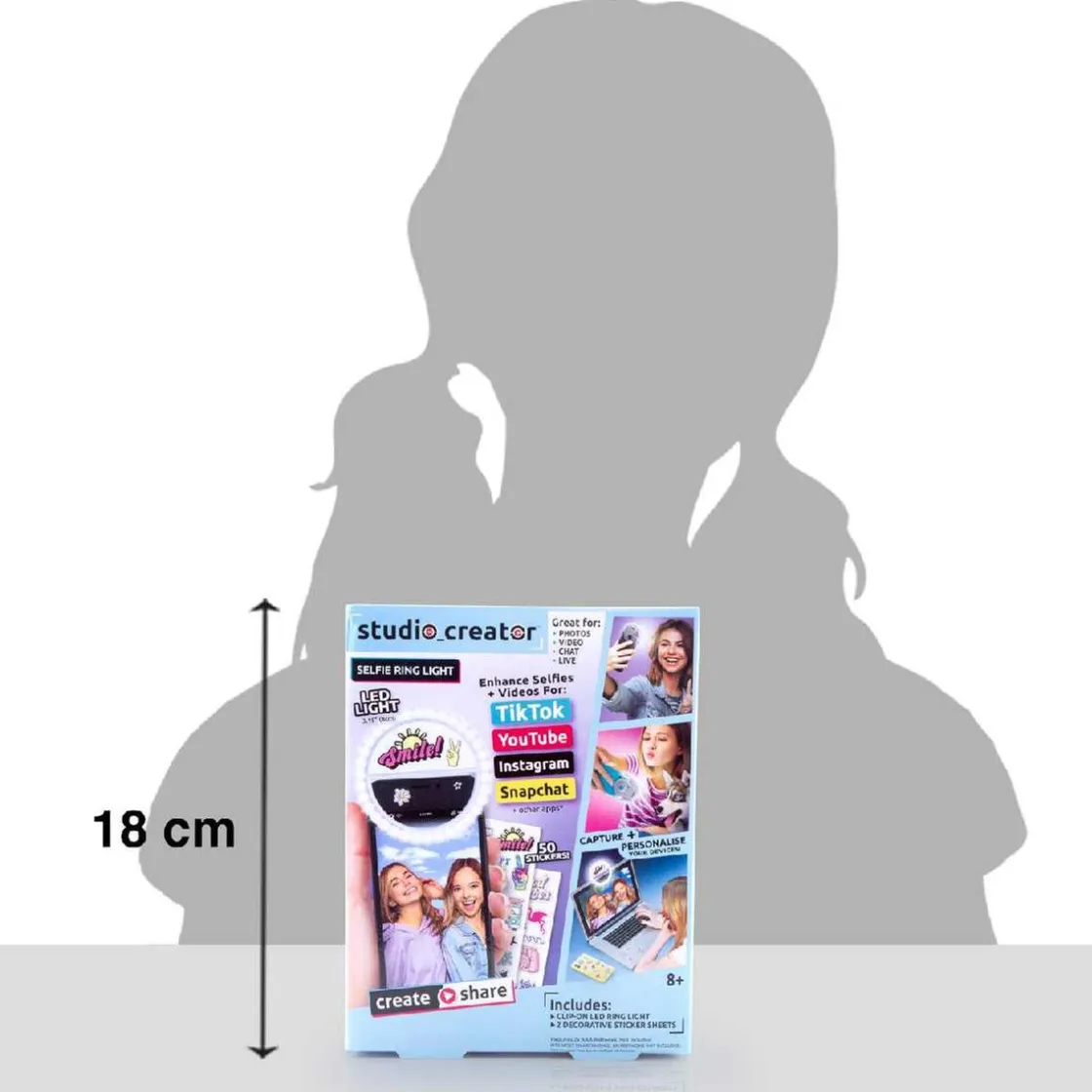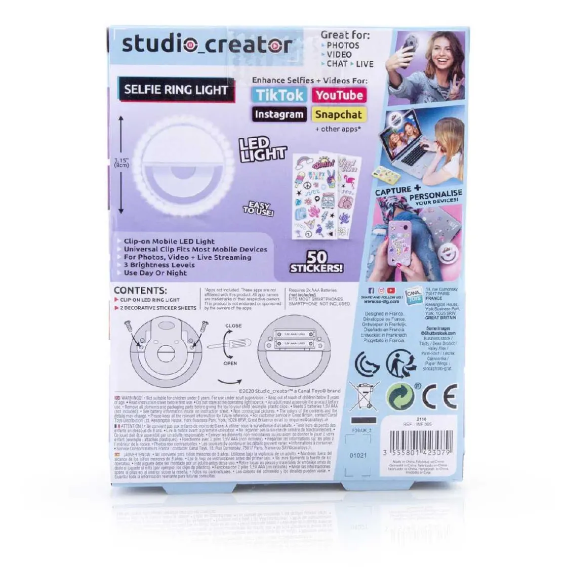 Studio Creator – Anillo de luz LED para selfies, un anillo de luz anular LED para selfies con clip.