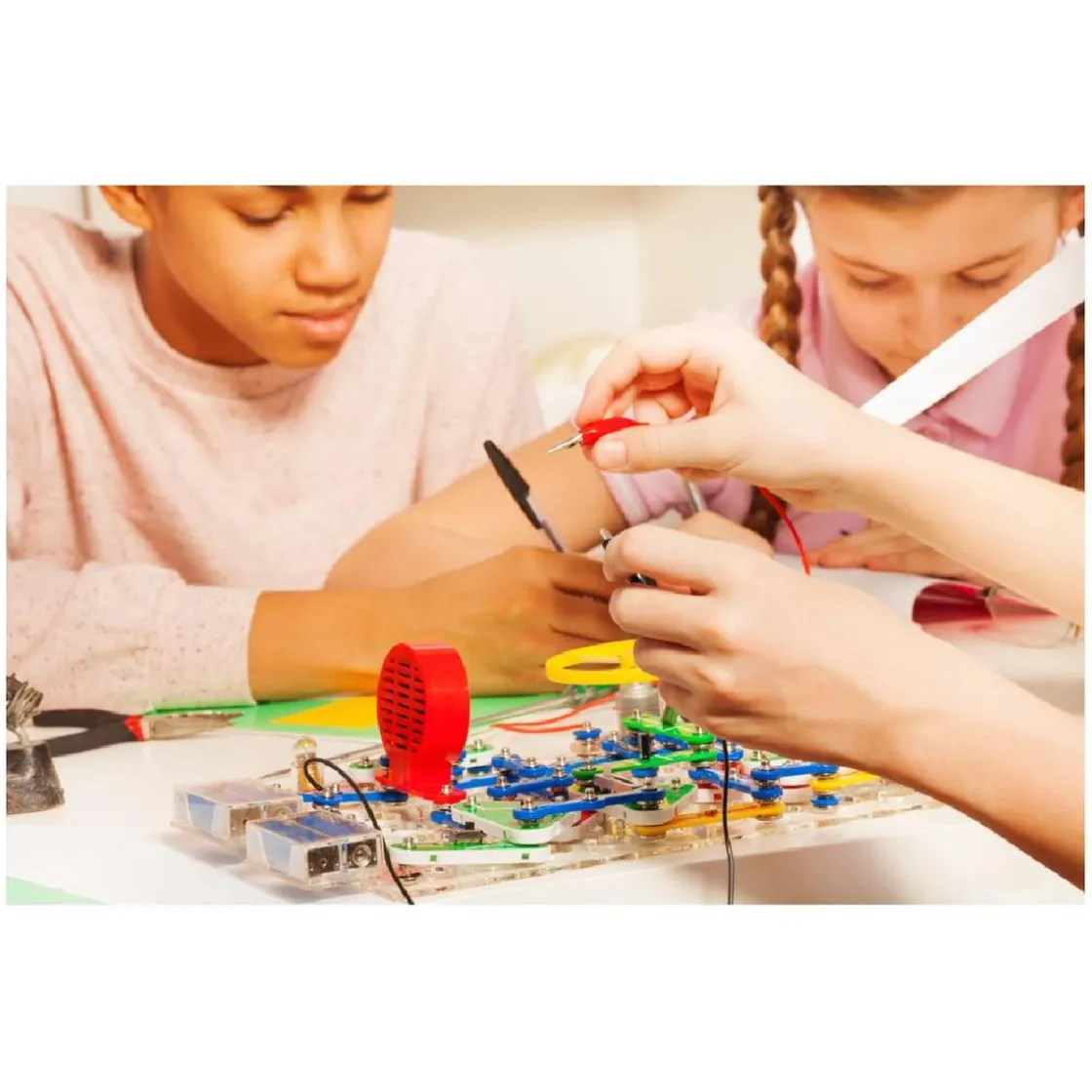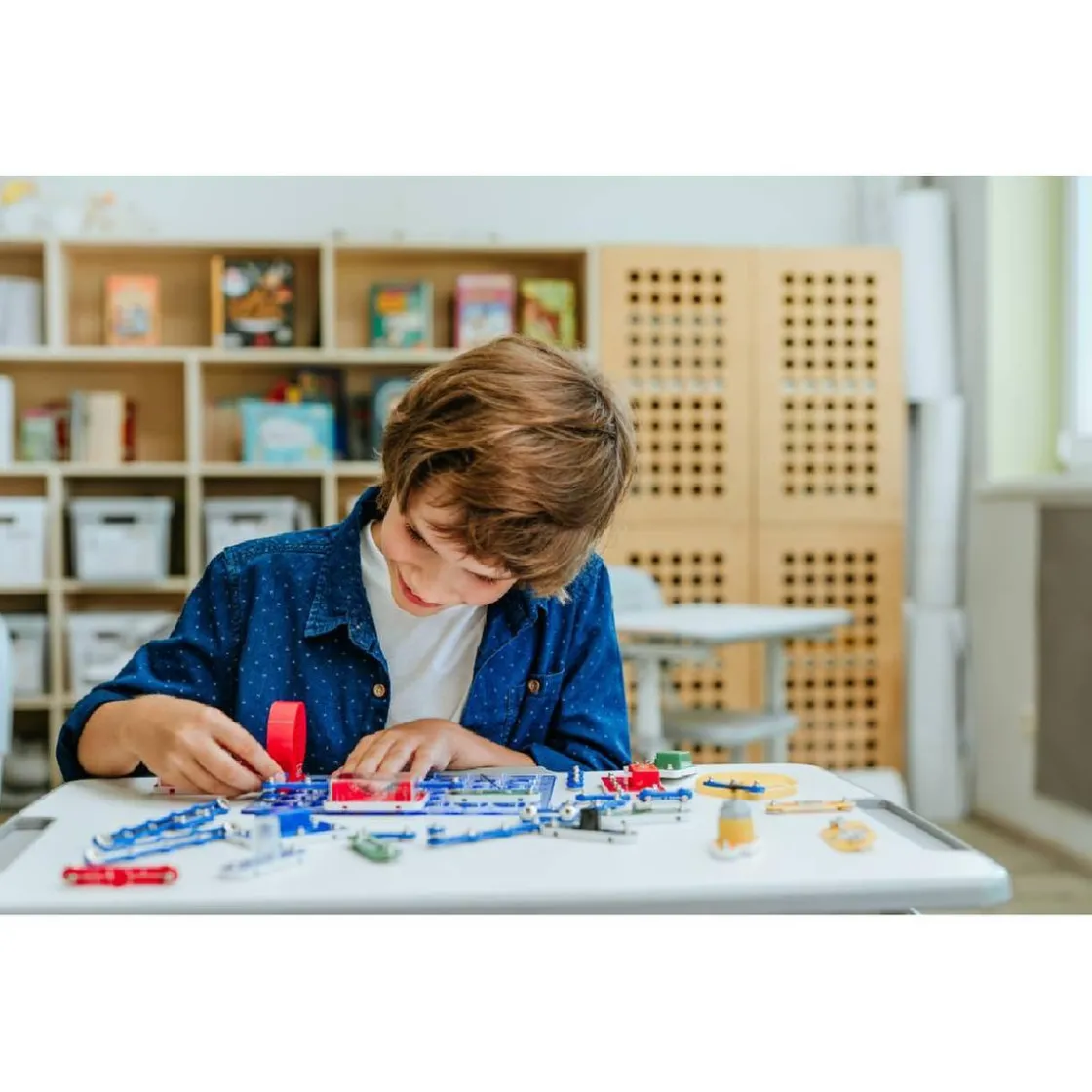 Con este kit los niños pueden construir divertidos circuitos de electricidad y ver la utilidad en la vida diaria, todos ellos con su código identificativo lo que facilita el montaje de los diferentes proyectos, además de aprender sobre física, electrónica, la manipulación de objetos pequeños y el desarrollo del pensamiento lógico.