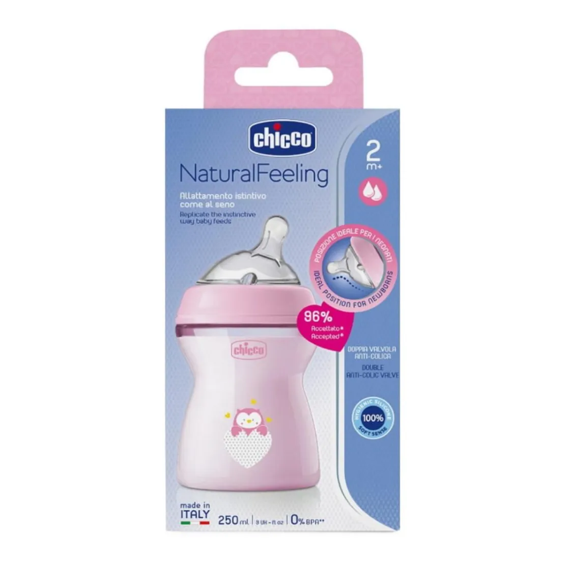Chicco – Biberón Natural Feeling 250ml Rosa 2m+