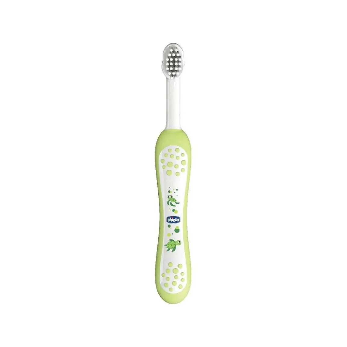 Chicco – Cepillo dental suave verde, ideal para que el bebé comience a tener el hábito de higiene bucal.