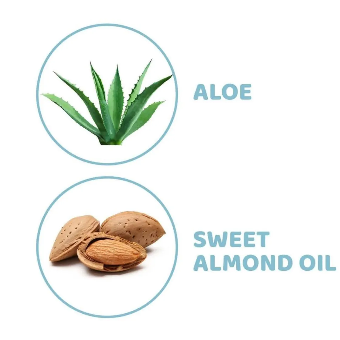 - Fórmula sin lágrimas con aloé vera, aceite de almendras dulces y betaína.