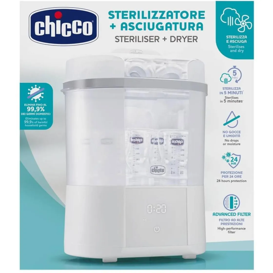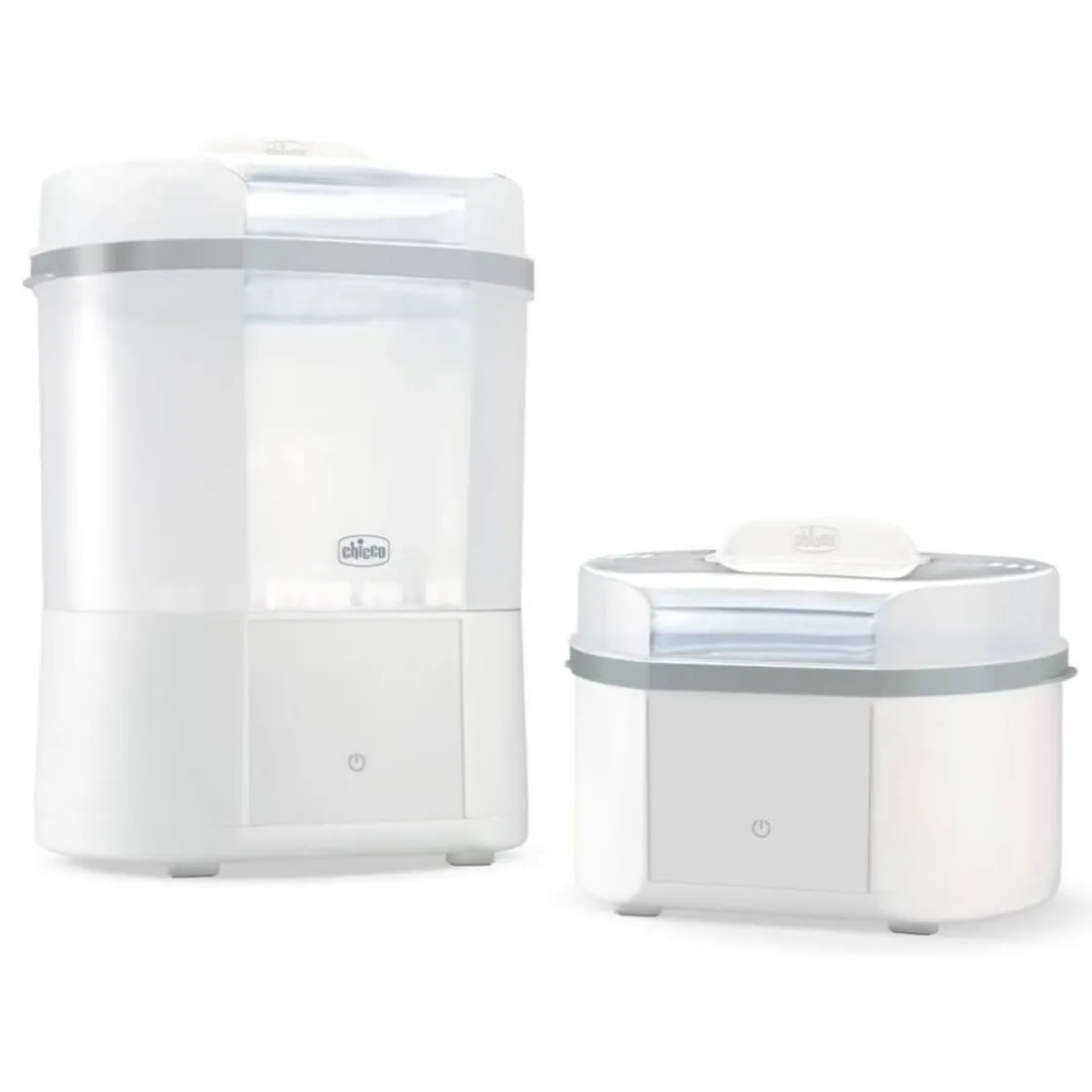 El Esterilizador con secador All in One de Chicco es la solución definitiva para mantener los utensilios de tu bebé impecablemente limpios y listos para usar en todo momento. Este innovador dispositivo combina la esterilización y el secado en un solo aparato, eliminando el 99,9% de los gérmenes y bacterias presentes en biberones, chupetes y otros accesorios. Su diseño modular ofrece dos configuraciones: el modo completo, que permite esterilizar hasta seis biberones y pequeños accesorios, y el modo compacto, ideal para dos biberones, un sacaleches o chupetes, adaptándose a tus necesidades diarias.