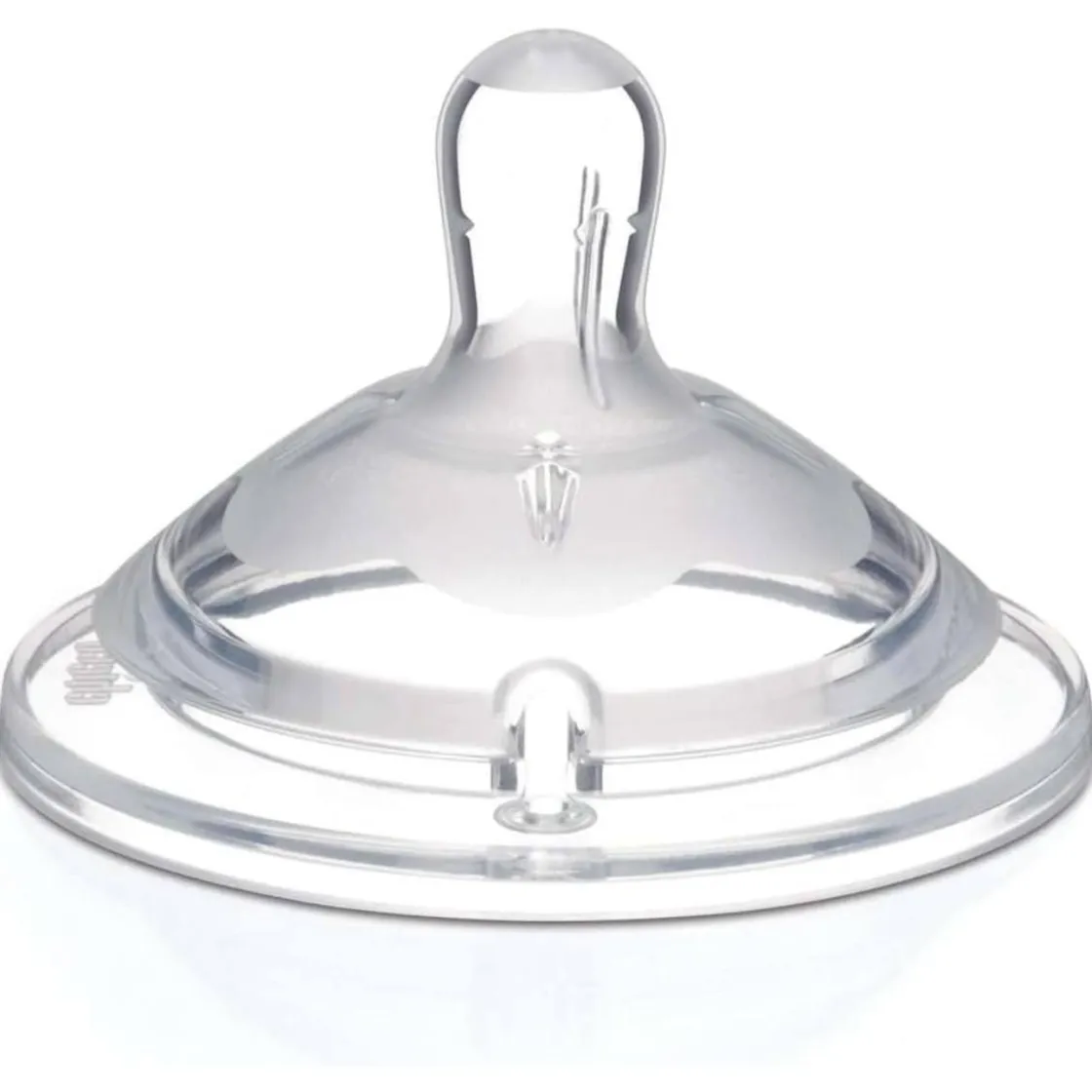 Este modelo incorpora una doble válvula anticólicos que reduce considerablemente la ingestión de aire, ayudando a disminuir las regurgitaciones y los cólicos tras la toma. Su material de silicona extra suave proporciona un tacto delicado y una experiencia de alimentación más confortable.