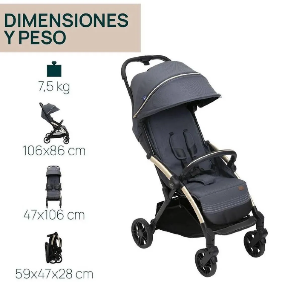 - Plegado automático: Con solo presionar un botón, la silla se pliega de manera automática, ideal para padres ocupados.