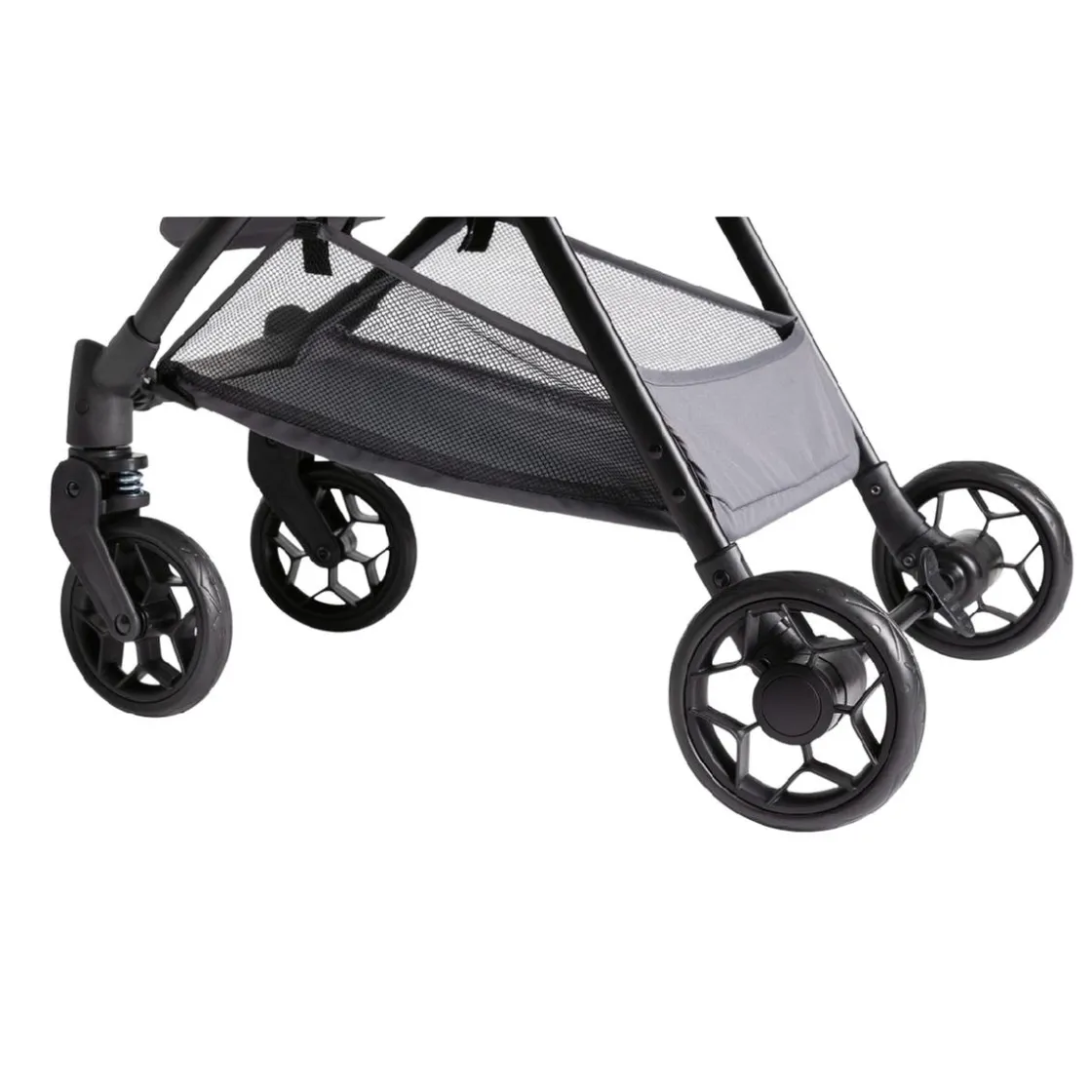 Con un diseño elegante en color Grayness, esta silla combina funcionalidad y estética para que tú y tu pequeño disfruten de cada aventura urbana.