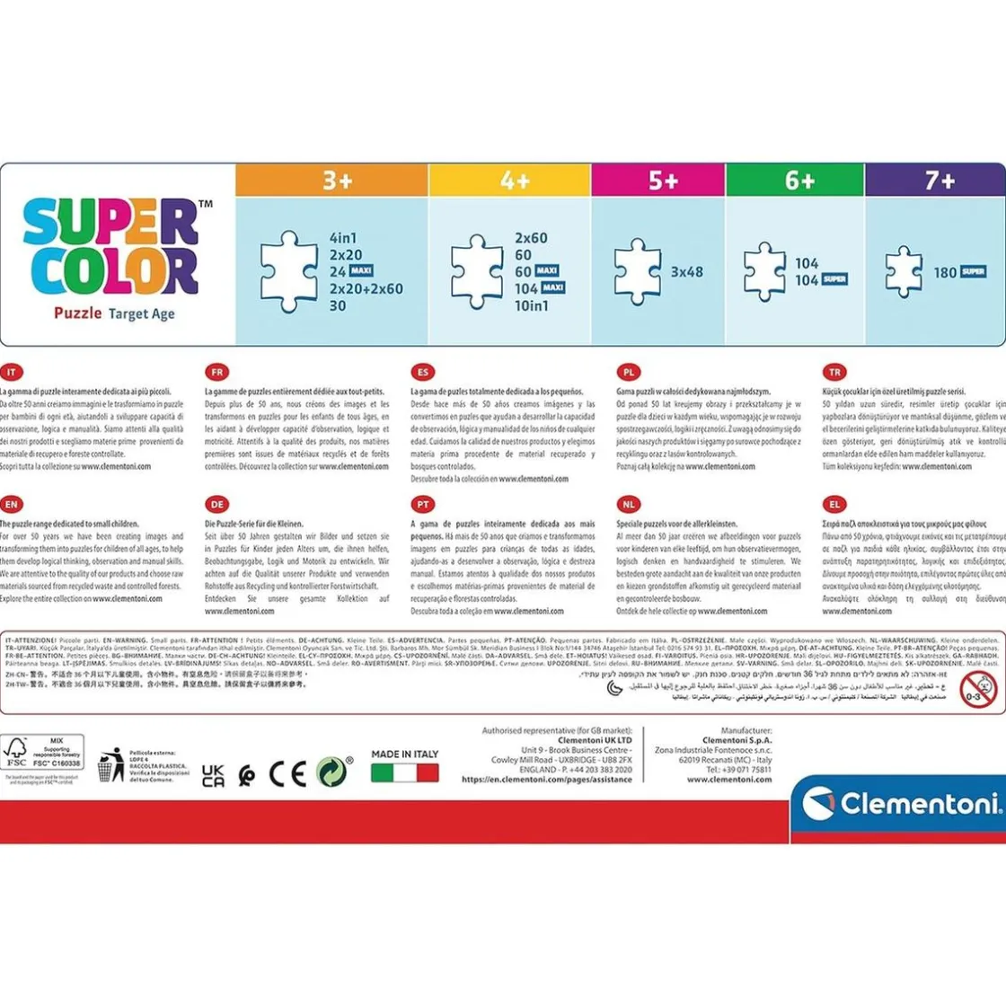 ¡No te preocupes por la seguridad de tu pequeño! Este puzzle infantil ha sido diseñado y fabricado en Italia con materiales 100% reciclables. Al mismo tiempo, la exclusiva técnica de impresión de Clementoni garantiza imágenes vívidas y colores brillantes para mantener la emoción hasta la última pieza.