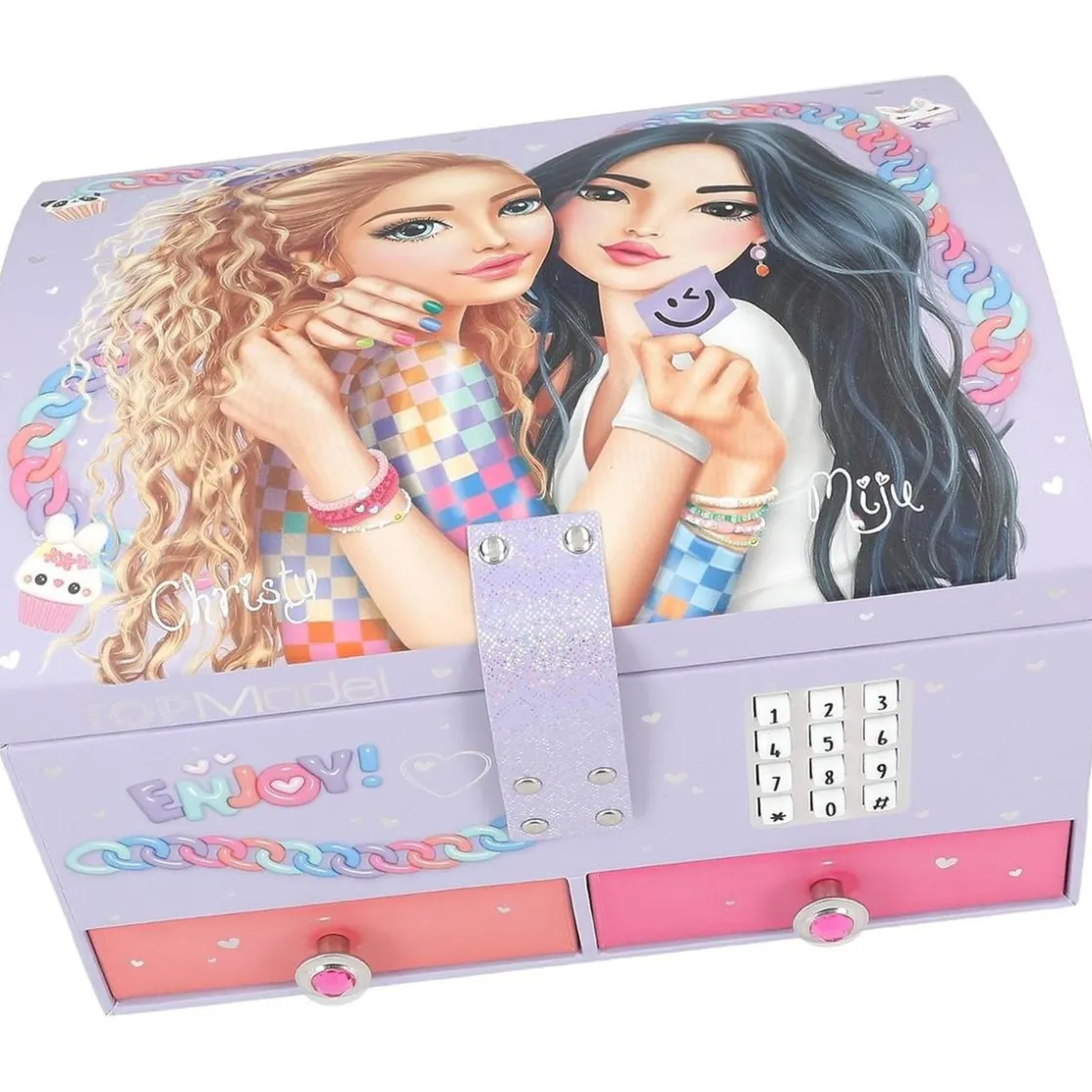 Descubre la magia del «Top Model – Joyero grande con código y sonido», un elegante y divertido organizador que ilumina el tiempo de juego. Diseñado con una estética en un delicado tono lila, este joyero se destaca por sus encantadores motivos de cadenas con colgantes y un diseño único que captura la esencia de TOPModel by Depesche. Los niños pueden guardar sus pequeños tesoros y secretos con total seguridad, gracias a un sistema de código personalizable que añade un toque de misterio y diversión.