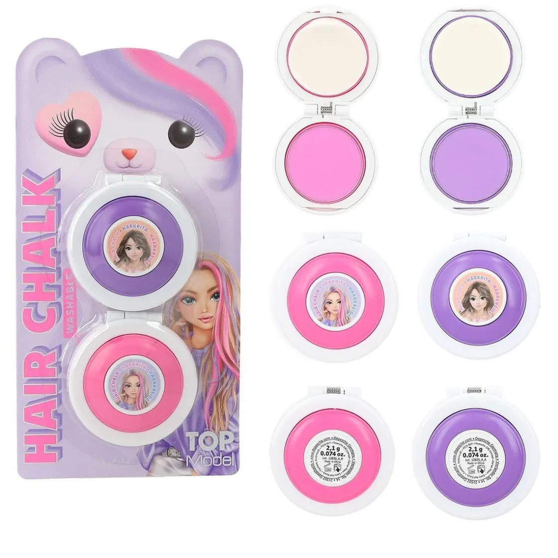 Top Model – Tizas para el pelo (Varios modelos) te ofrece la oportunidad de añadir un toque de color a tu estilo de forma sencilla y divertida. Cada pack incluye dos tizas especialmente diseñadas para el pelo, perfectas para crear mechas de impactantes colores. Sólo tienes que deslizar la tiza por tu cabello y verás cómo se transforman tus mechones al instante. Y no te preocupes, el color se elimina fácilmente al lavar el pelo, así que puedes cambiar de look tantas veces como quieras.