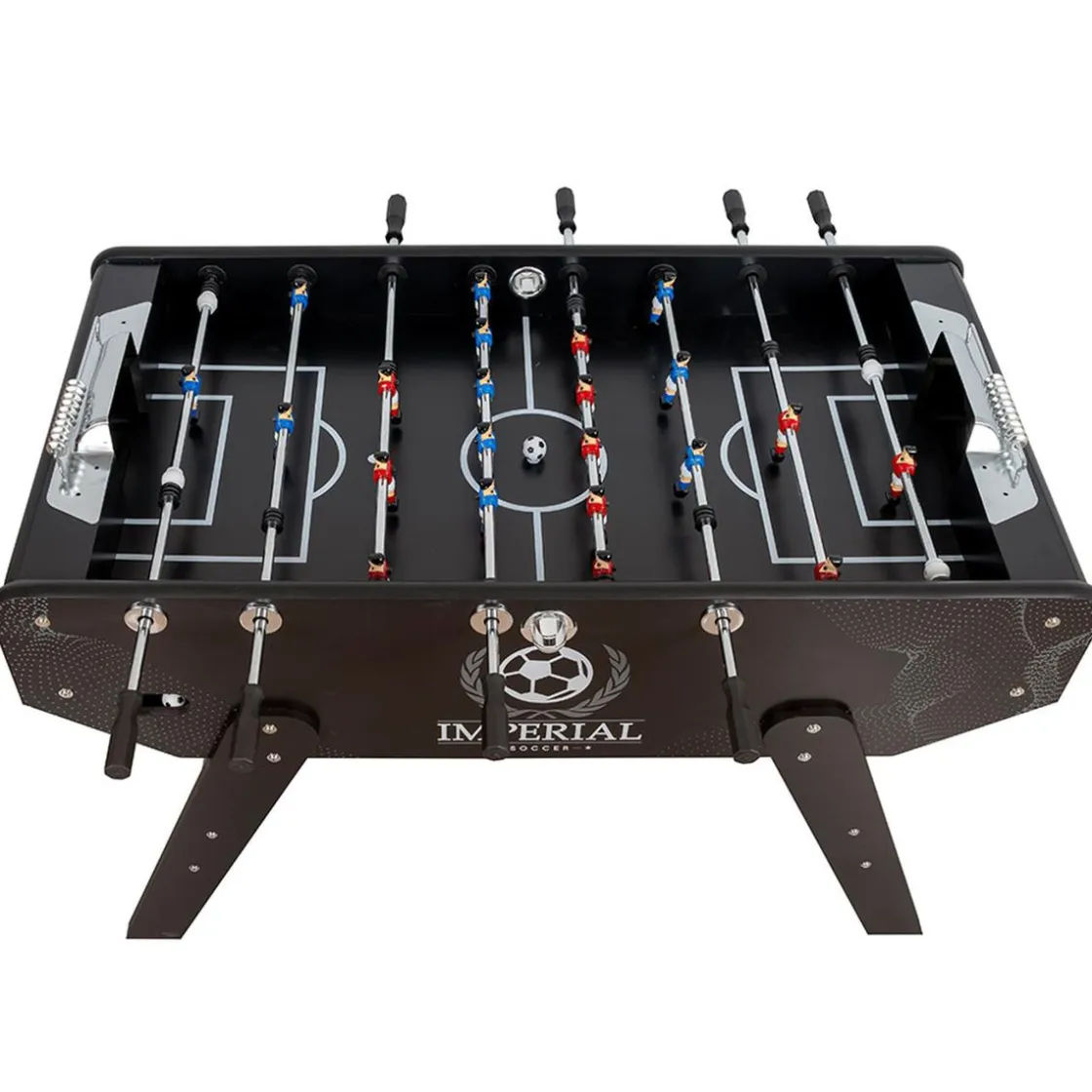 El futbolín profesional Imperial es de gran tamaño con un diseño de línea moderna. Fabricado con una estructura de madera contrachapada ofreciendo una alta resistencia a la deformación. ¿A qué esperas para hacerte con este futbolín? Sus porterías, contadores y acabados de aluminio ofrecen al futbolín un toque diseño y profesional. Tiene unas medidas de: 142 x 74 x 87,5 cm y un peso de 49 kg.