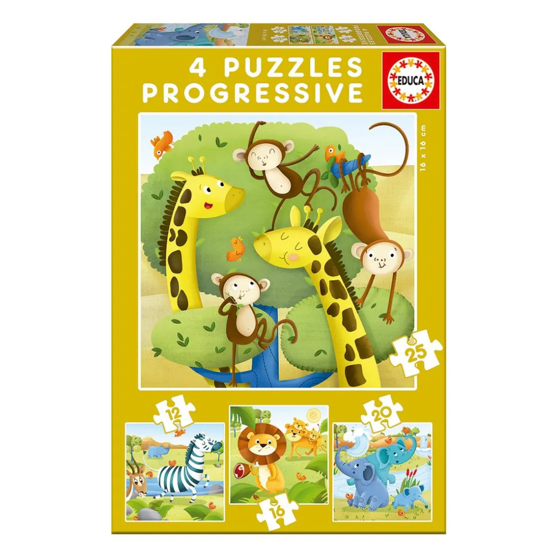 Educa Borrás – Animales Salvajes – Pack 4 Puzzles Progresivos, un pack compuesto por 4 puzzles.