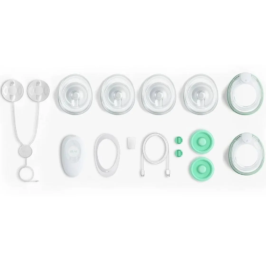 Su diseño ergonómico incluye piezas de alta calidad fabricadas con materiales libres de BPA, garantizando seguridad para la madre y el bebé. El set incluye todo lo necesario: base de control, embudos de silicona, válvulas, membranas, tubos y un cable de carga. Además, su peso ligero, inferior a 150 gramos por contenedor, lo hace práctico y cómodo para transportar.