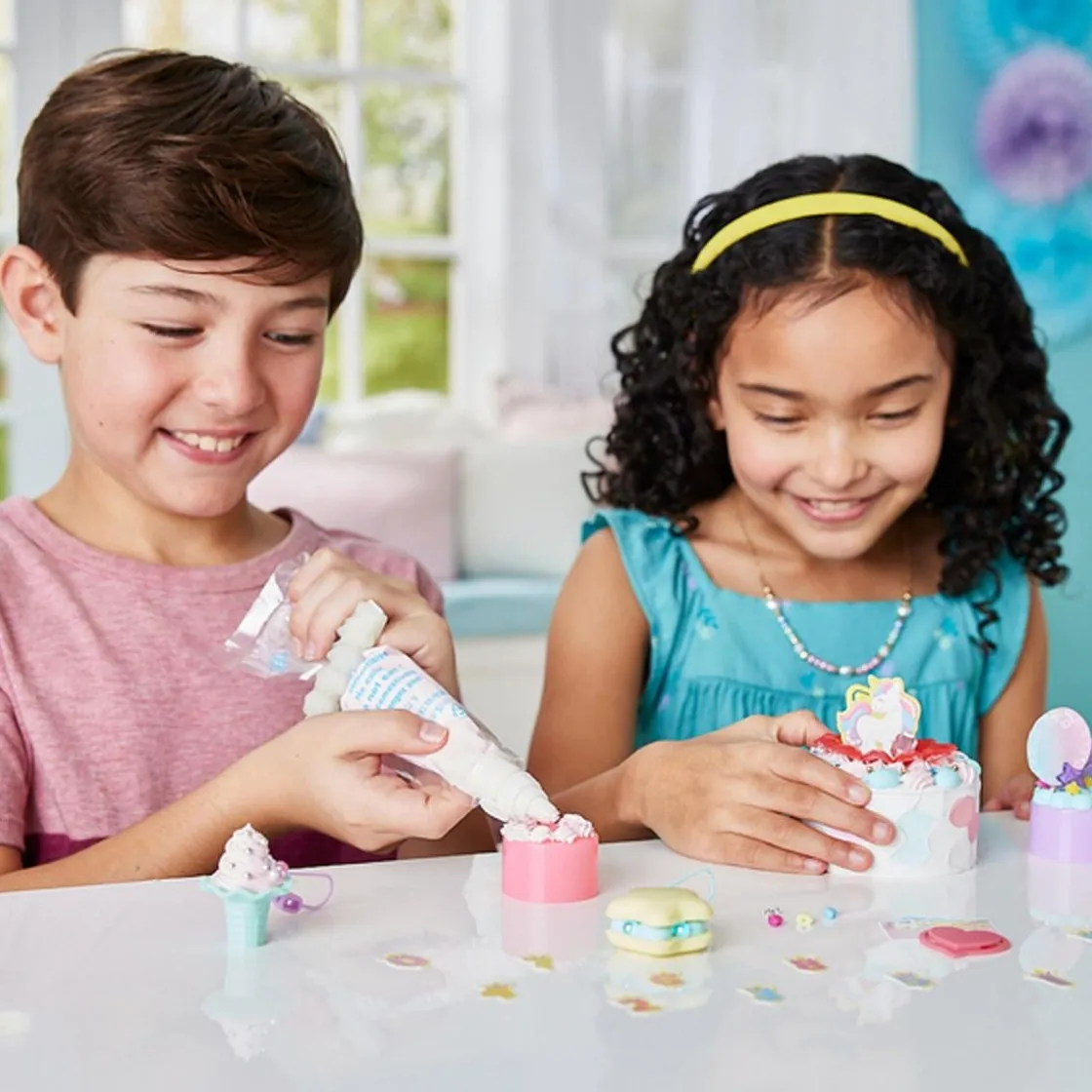 Personaliza tus creaciones en forma de pastelillos para convertirlos en objetos de decoración con las masas y herramientas de «Taller de Manualidades Pati-School». La creatividad cobra vida en las manos de tus hijos, permitiéndoles crear detallados adornos y complementos con un acabado profesional y mucha personalidad. Al final, las satisfactorias creaciones gourmet estarán listas para compartir o exhibir con orgullo.