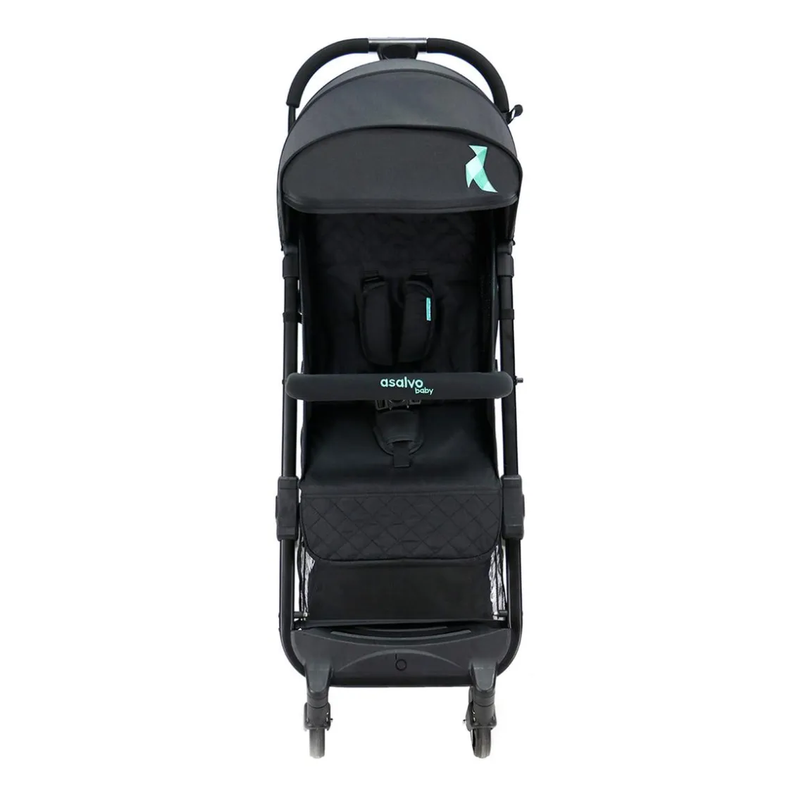Asalvo – Silla de Paseo Travel Negro, una silla de paseo funcional con chasis en acero y plegado que permite un cómodo transporte en la cabina del avión.