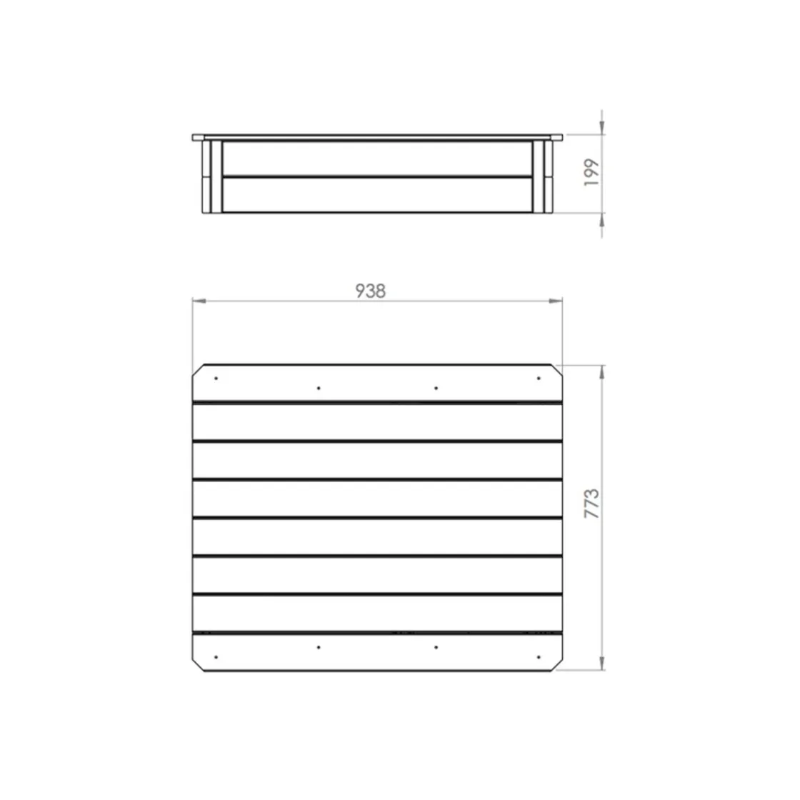 Fabricado en madera de cedro certificada FSC. Este tipo de madera no se astilla y es naturalmente resistente a la lluvia y a la podredumbre de la madera.