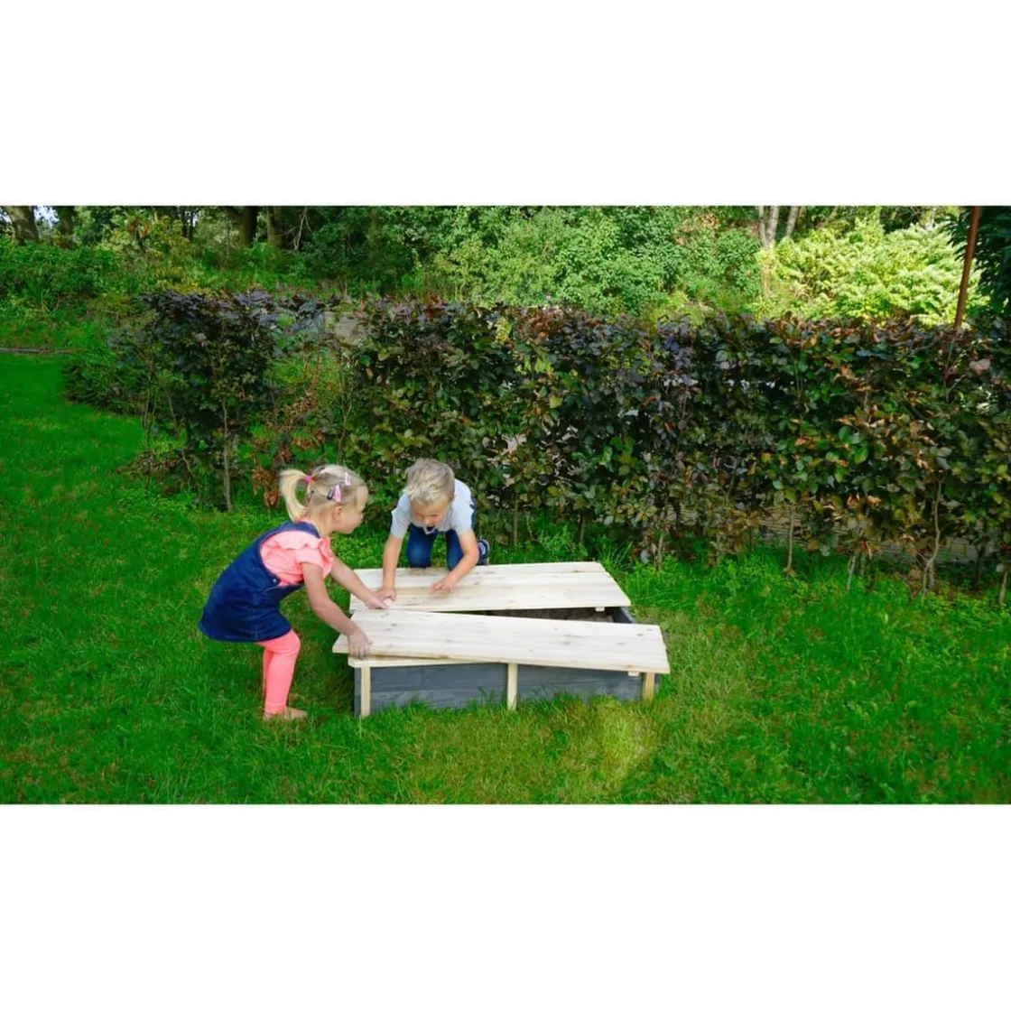 No es necesario tratar la madera del arenero antes de usarlo, los niños pueden jugar de forma segura desde el principio.