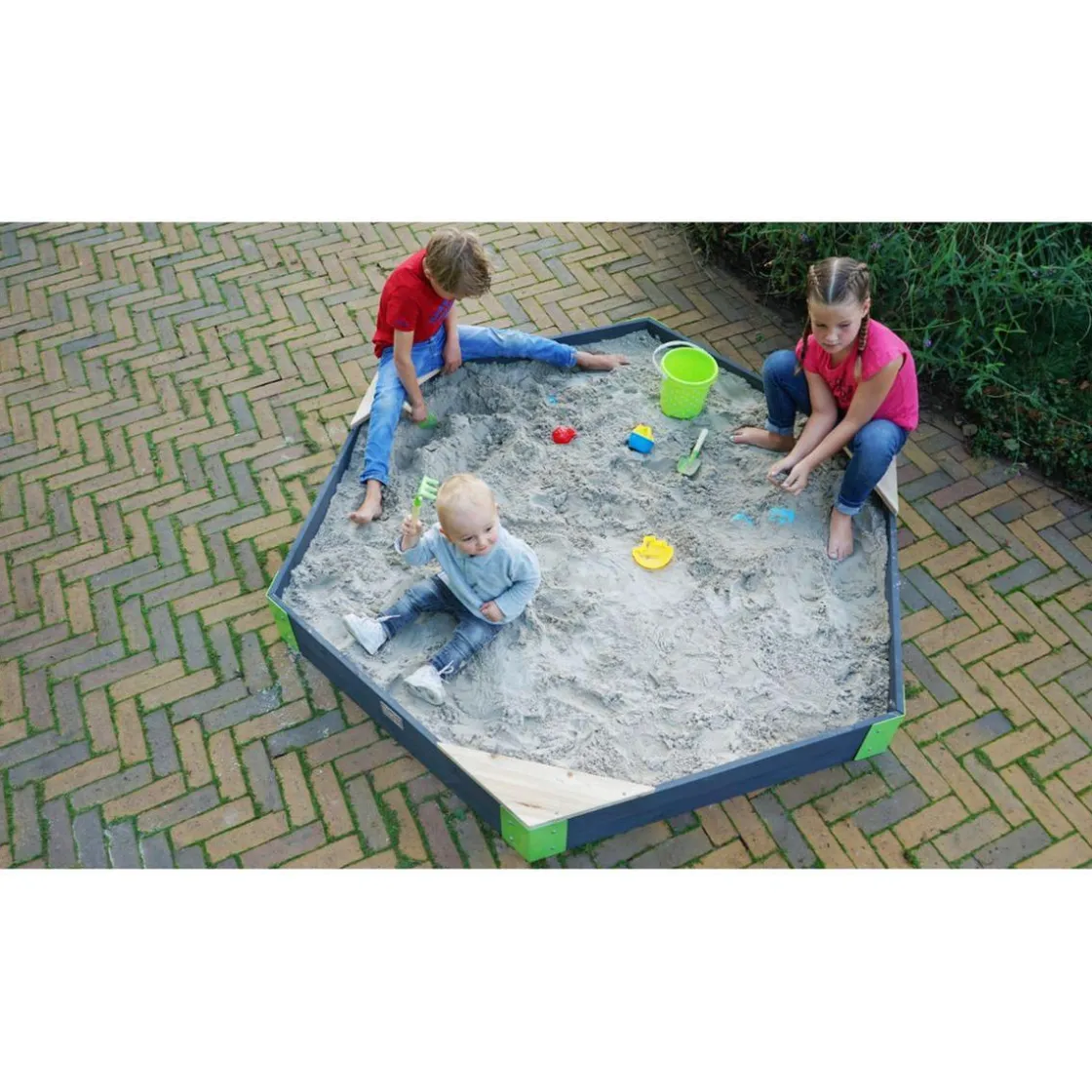 Exit – Arenero de madera Aksent Hexágono 200 x 170 cm, un arenero con forma de hexágono para divertirte y dejar volar tu imaginación.