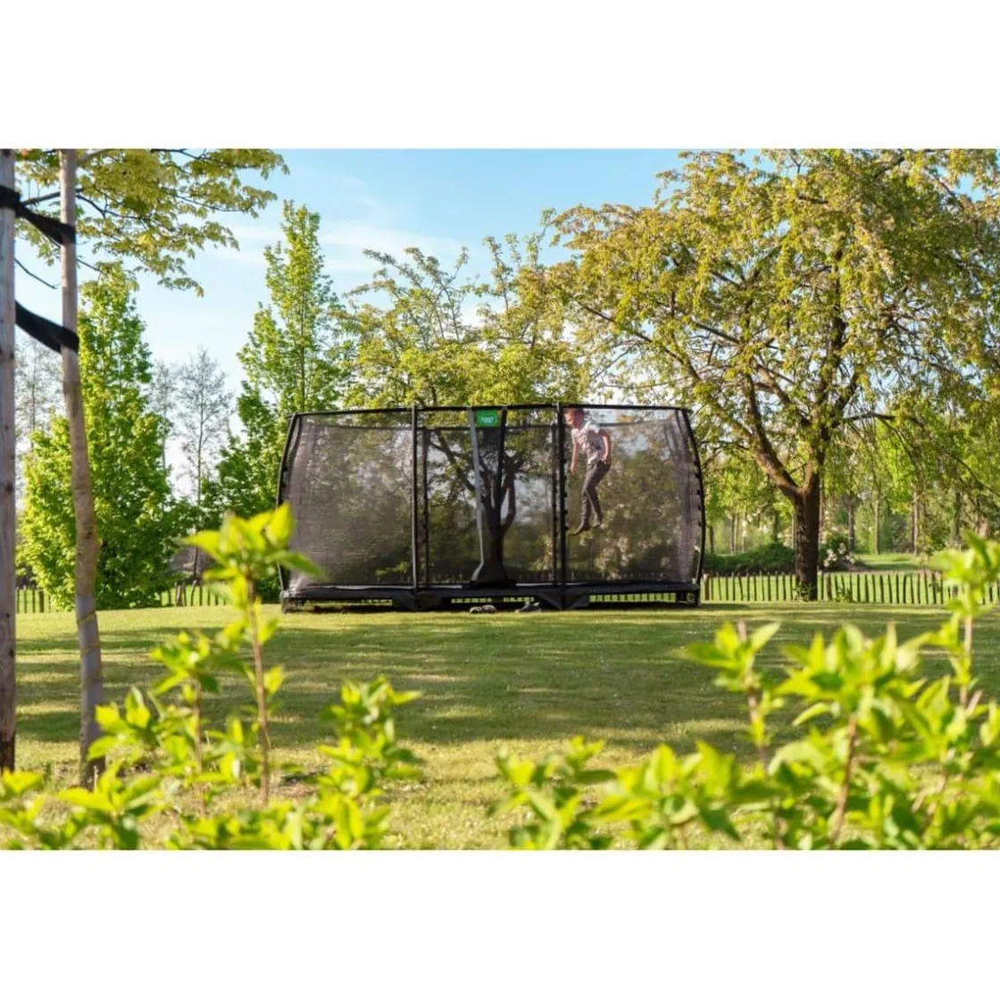 Exit – Cama elástica de suelo Allure Classic 214 x 366 cm verde, un trampolín para ser semienterrado con borde protector acolchado y red de seguridad.