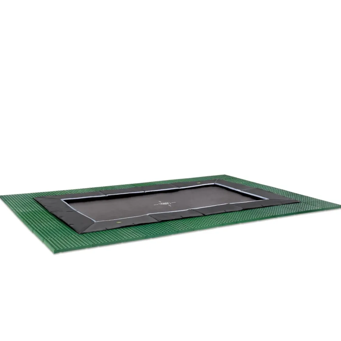 Exit – Cama elástica de suelo Dynamic 244 x 427 cm negro con perímetro de seguridad, un trampolín rectangular a nivel del suelo de color negro mate con una calidad superior.