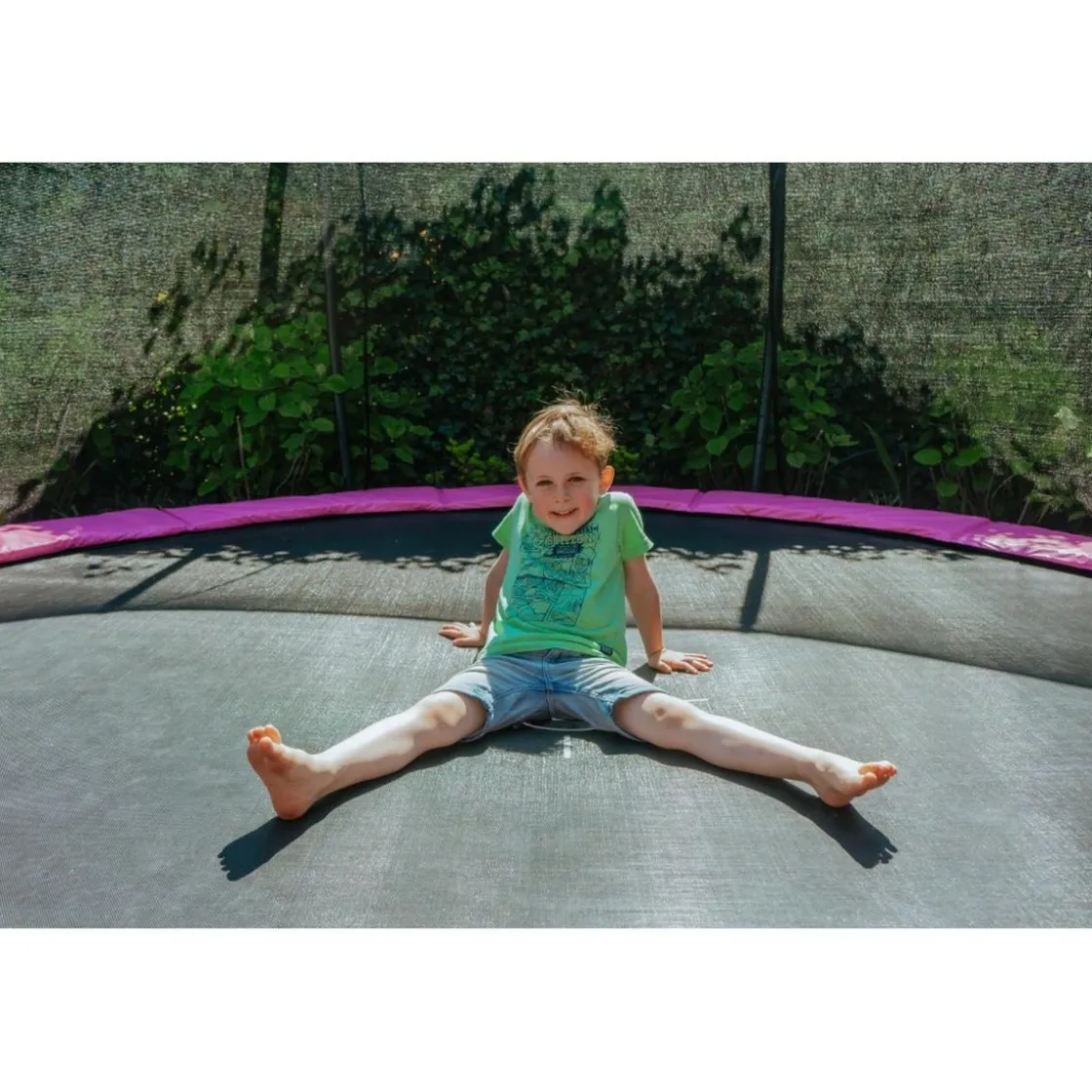 Exit – Trampolín Silhouette redondo de suelo rosa 427 cm, trampolín verde redondo con las patas enterradas de 427 cm de diámetro.