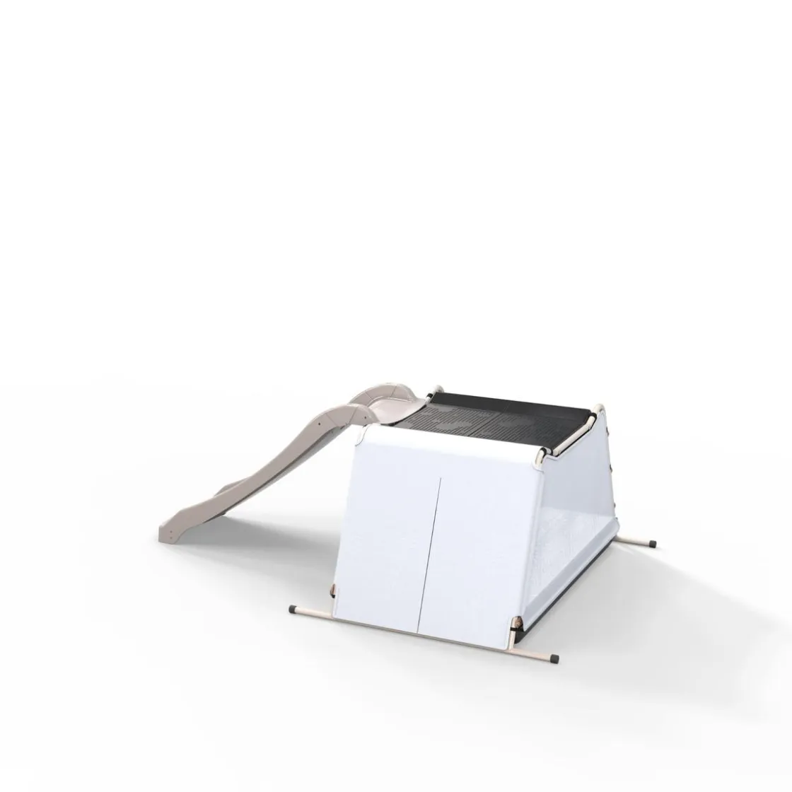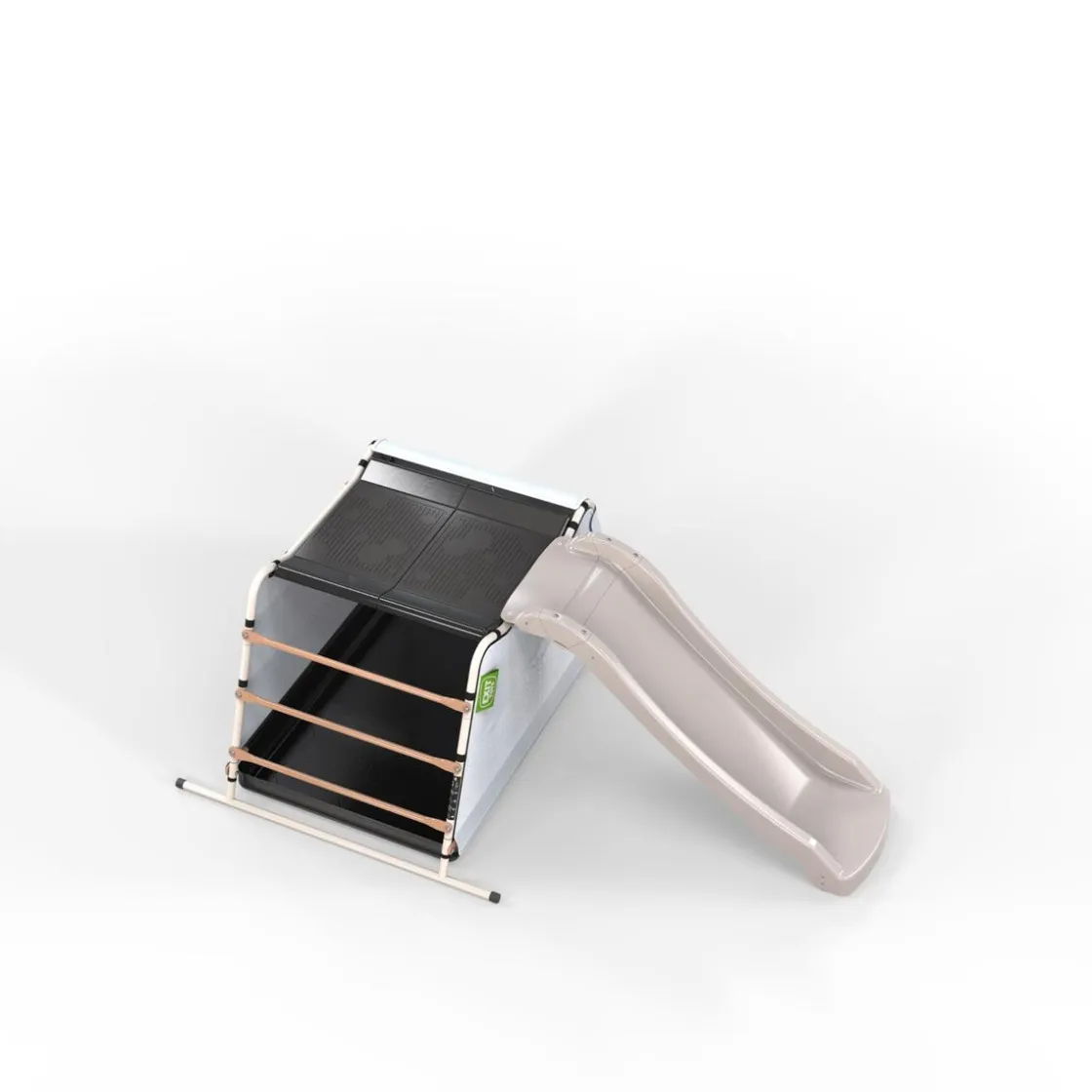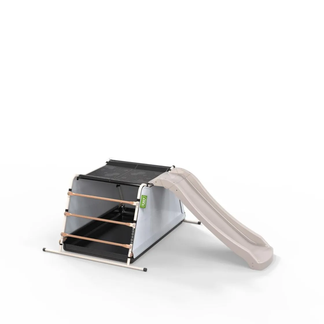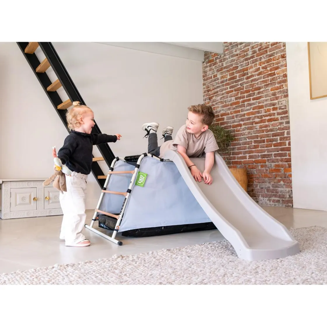 Debido a su tamaño compacto, este multiplay se puede utilizar tanto en exteriores como en interiores. El diseño contemporáneo con tonos de colores suaves hace que este multiplay luzca elegante dentro de tu hogar o en el jardín. Gracias al marco de acero, este multiplay es extra estable. La tienda de juegos tiene una capa de espuma en el techo, que ofrece protección contra golpes. Los niños a partir de 2 años pueden subir los peldaños y deslizarse con seguridad. La unidad de juego se puede montar fácilmente y, debido a su peso ligero, se puede mover o guardar con facilidad. La seguridad de este área de multijuego ha sido aprobada por el reconocido y reconocido instituto de pruebas TÜV.