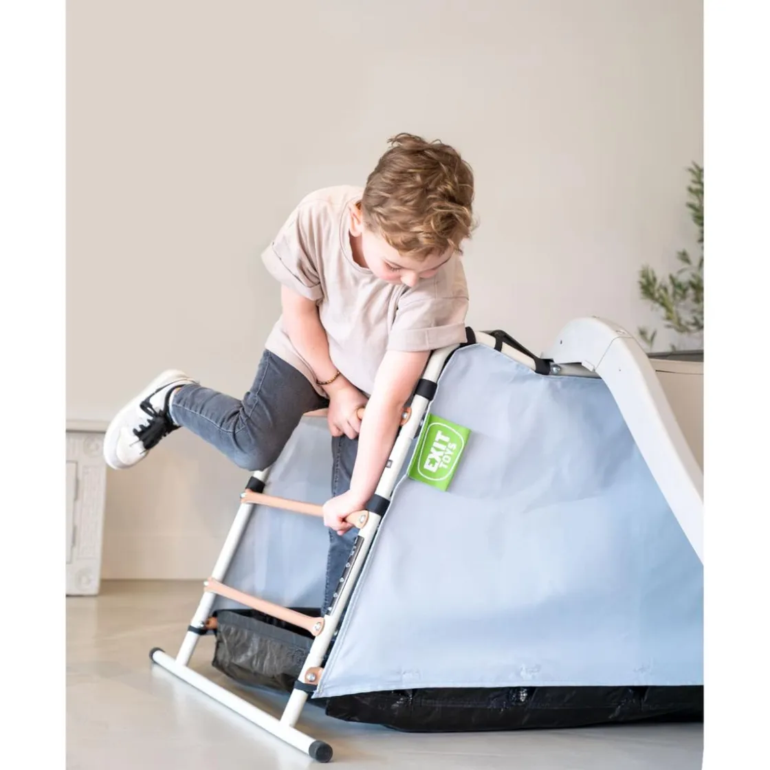 Exit- Mi primer Área de juego. Este área de juego Exit, que incluye tobogán y tienda de juegos es una unidad de juego divertida para que varios niños jueguen simultáneamente. Escalar, deslizarse o jugar al escondite: ¡el multiplay ofrece diversión interminable para los más pequeños!