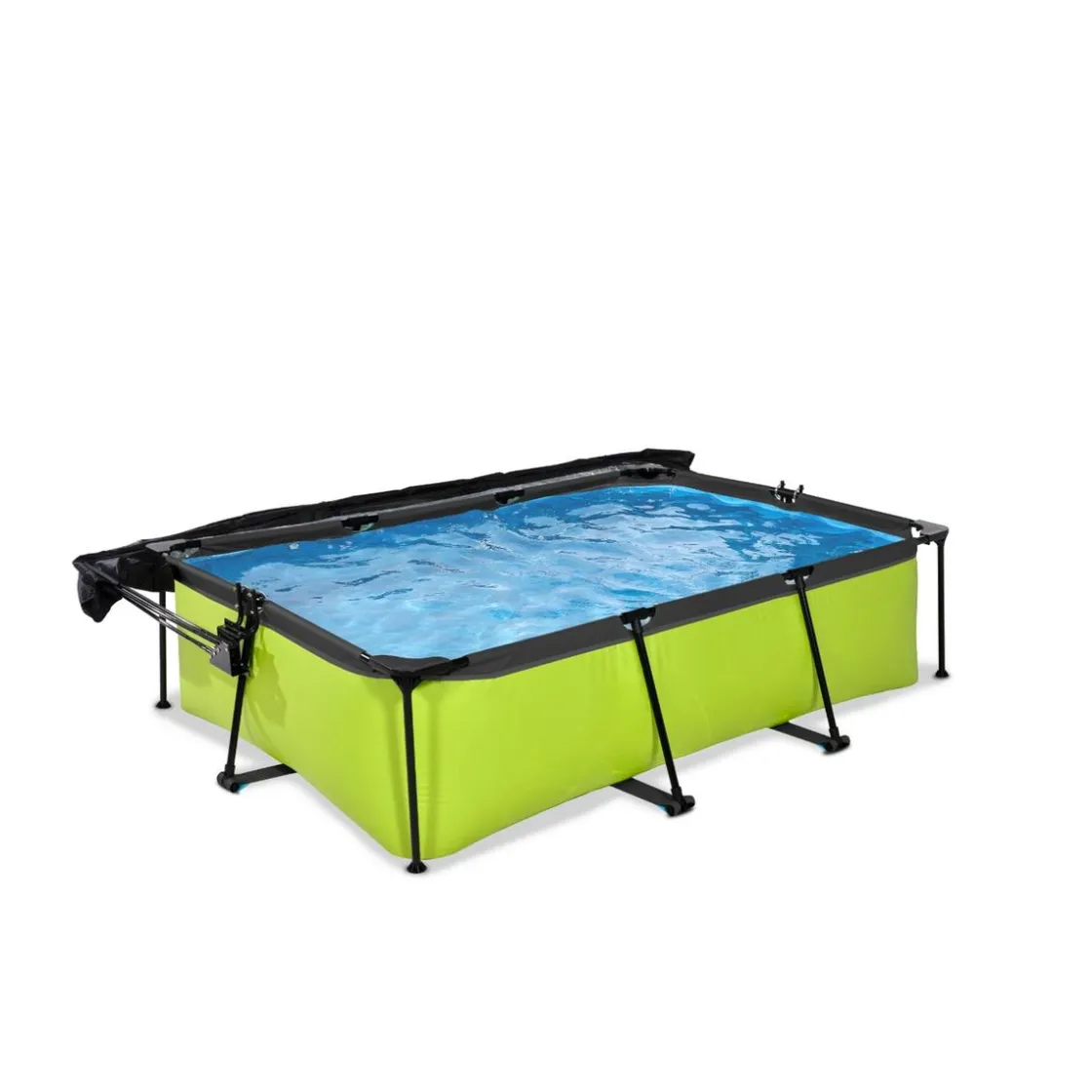 Exit – Piscina Lime verde 220 x 150 x 65 cm con filtro y toldo negro, una piscina rectangular de color verde lima que se integra perfectamente en tu jardín.