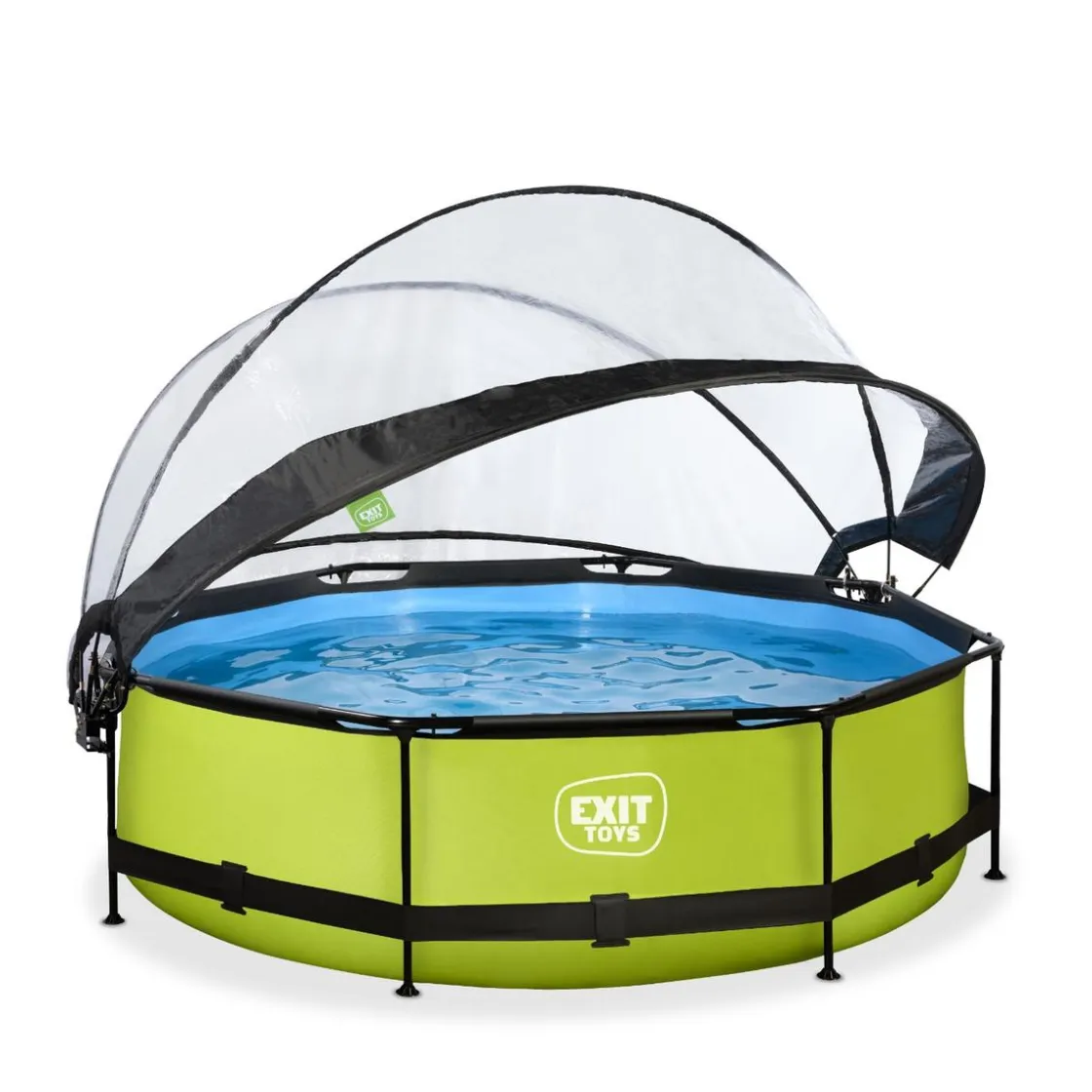 Exit – Piscina Lime verde diámetro 300 x 76 cm con filtro y cúpula transparente, una piscina redonda de color verde lima que se integra perfectamente en tu jardín.