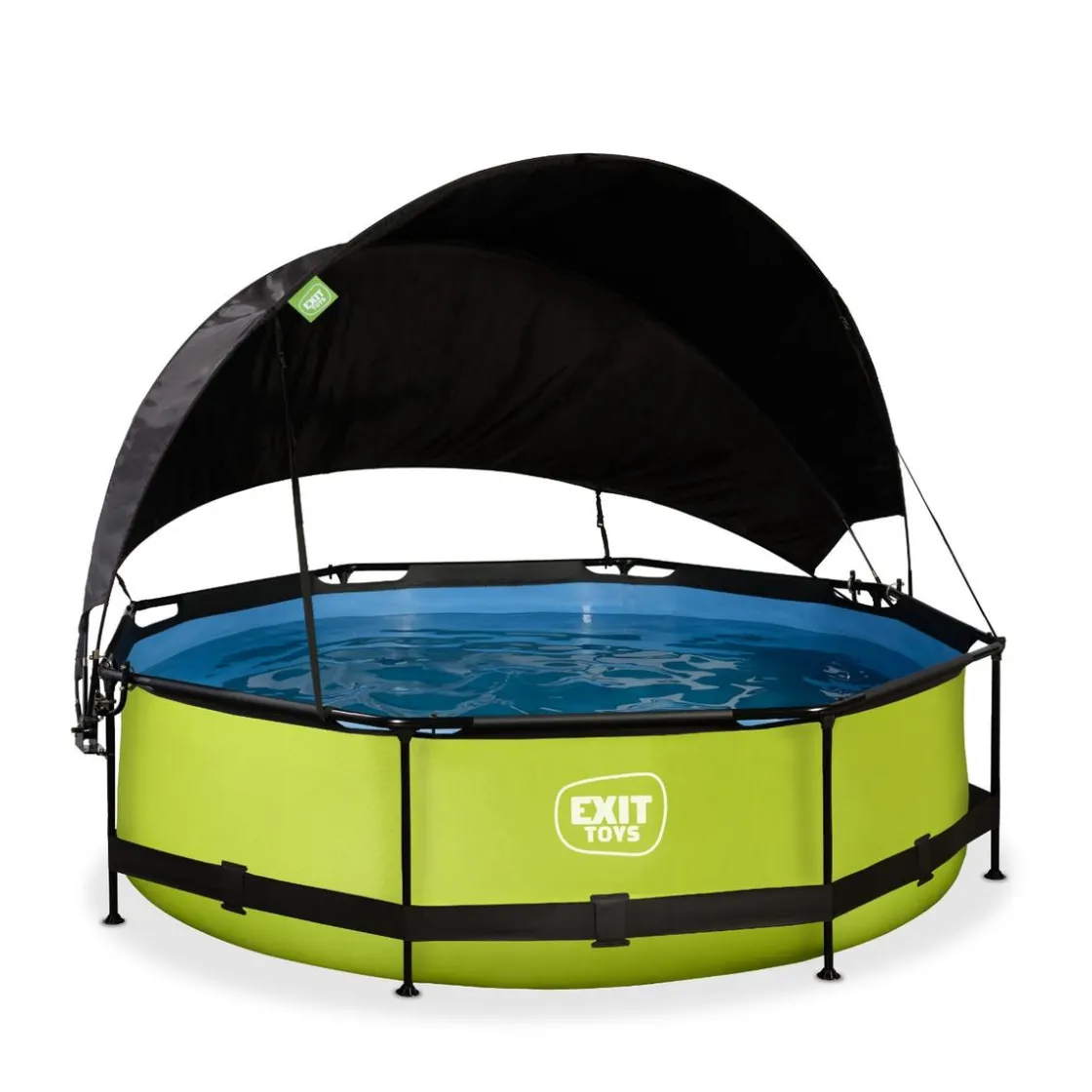 Exit – Piscina Lime verde diámetro 300 x 76 cm con filtro y toldo negro, una piscina redonda de color verde lima que se integra perfectamente en tu jardín.