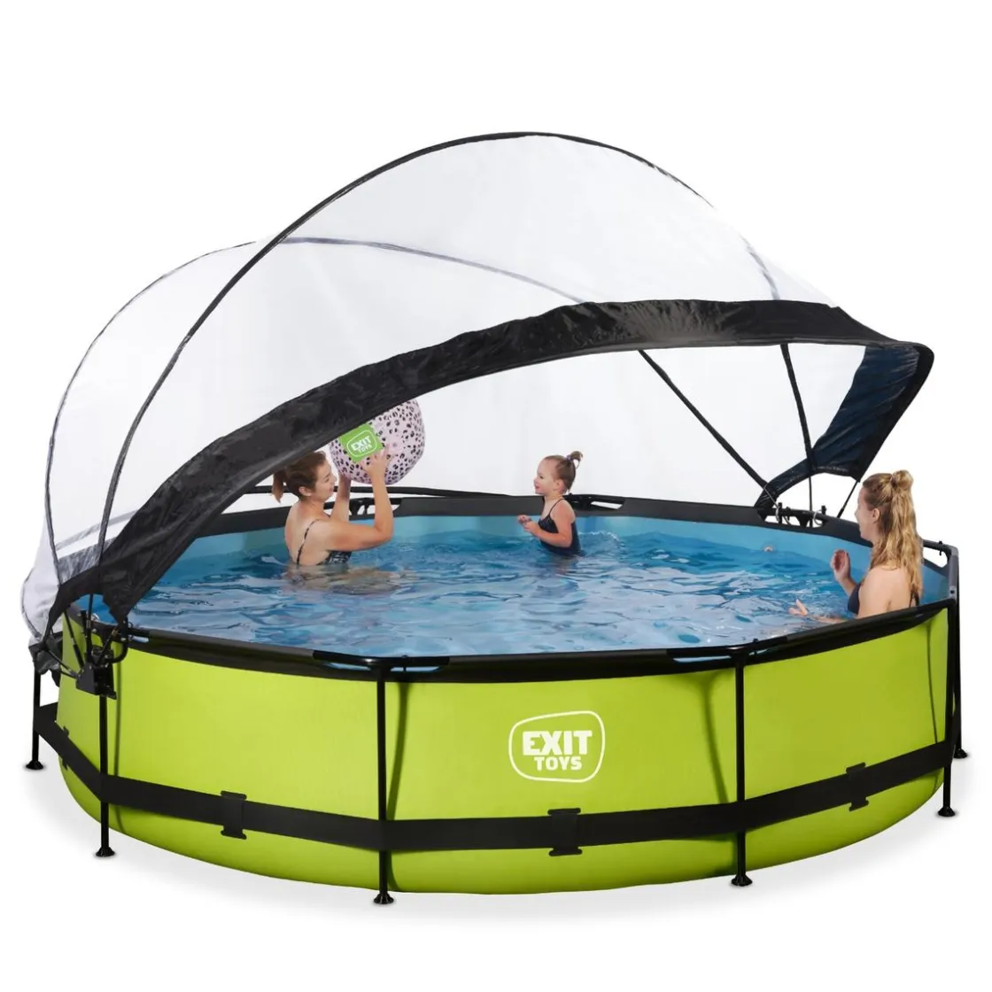 Exit – Piscina Lime verde diámetro 360 x 76 cm con filtro y cúpula transparente, una piscina redonda de color verde lima que se integra perfectamente en tu jardín.