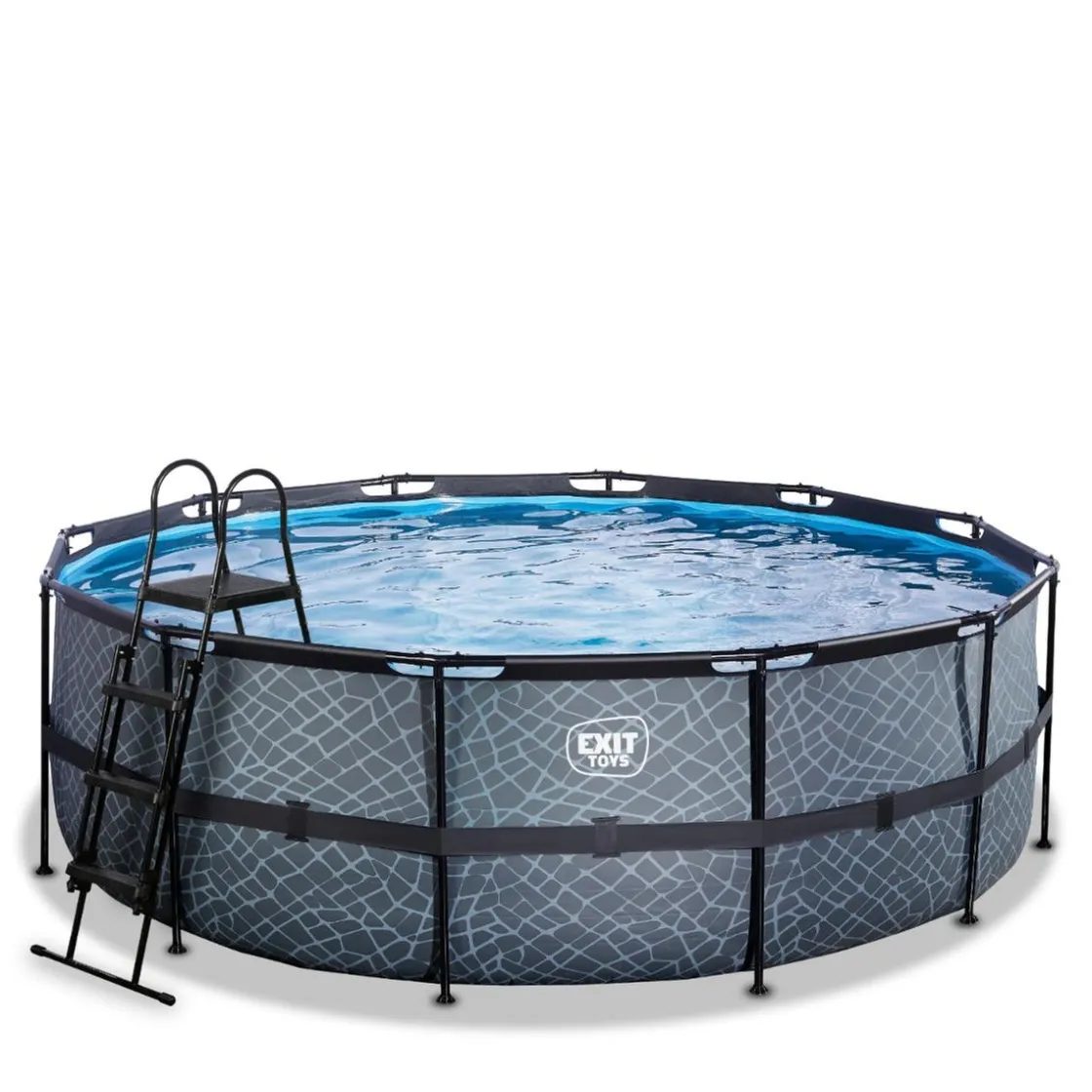 El marco de acero galvanizado con recubrimiento en polvo y las robustas patas de la piscina Exit Stone aseguran que la piscina siempre permanezca estable y dure muchos años.