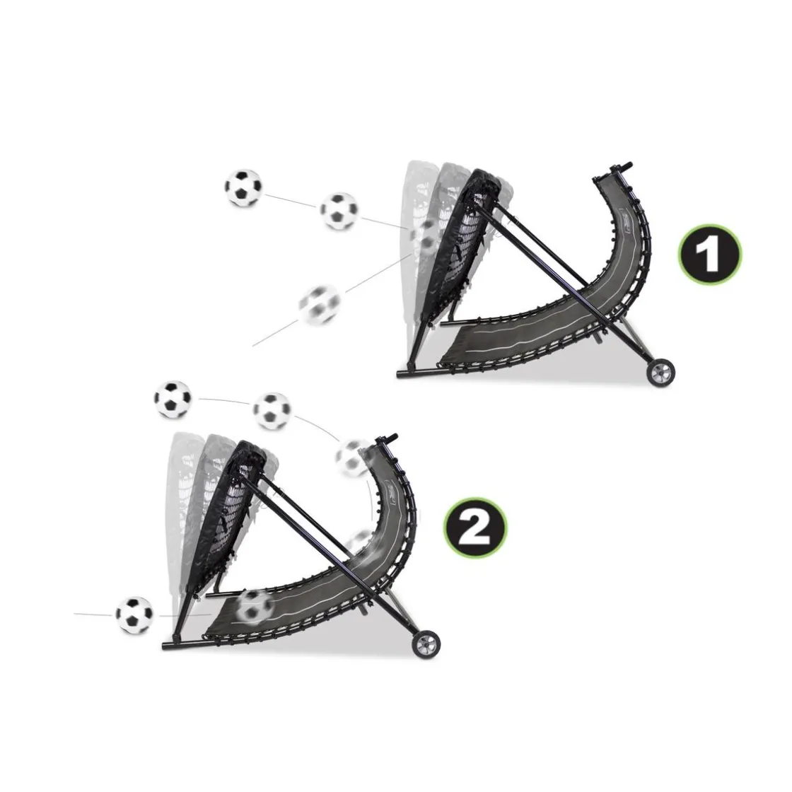 Los rebotadores de EXIT Toys se pueden configurar en varios ángulos; Tú decides cómo quieres que el balón rebote. El ángulo se puede ajustar entre 35° y 90° en más de 10 posiciones.