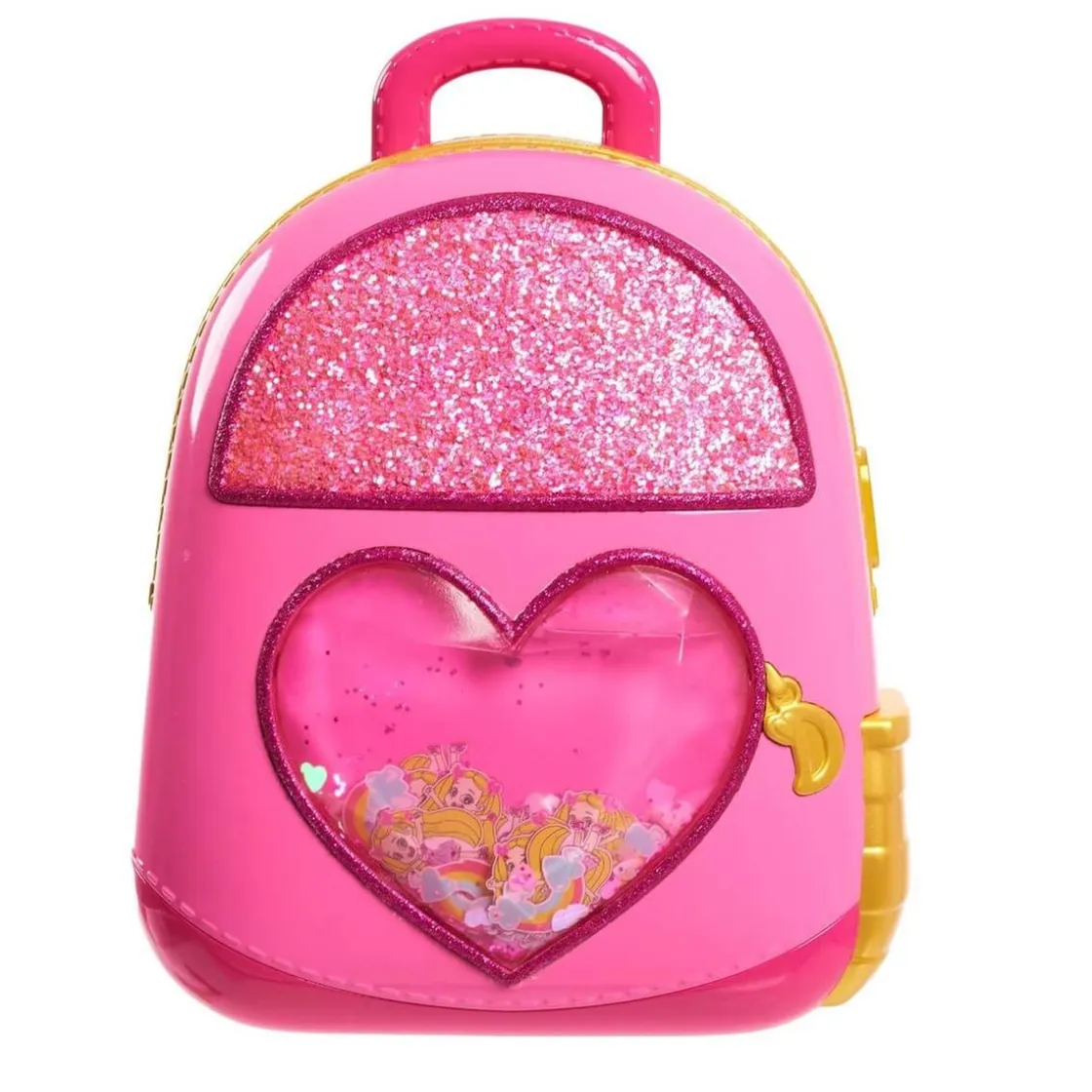 La mochila es de color rosa y brilla mucho ya que viene con purpurina que además flota.