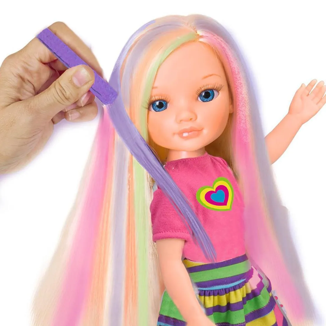 Cambia el look con el cepillo y las varias tizas de colores para que se parezca a tu personaje o a tu famosa favorita.