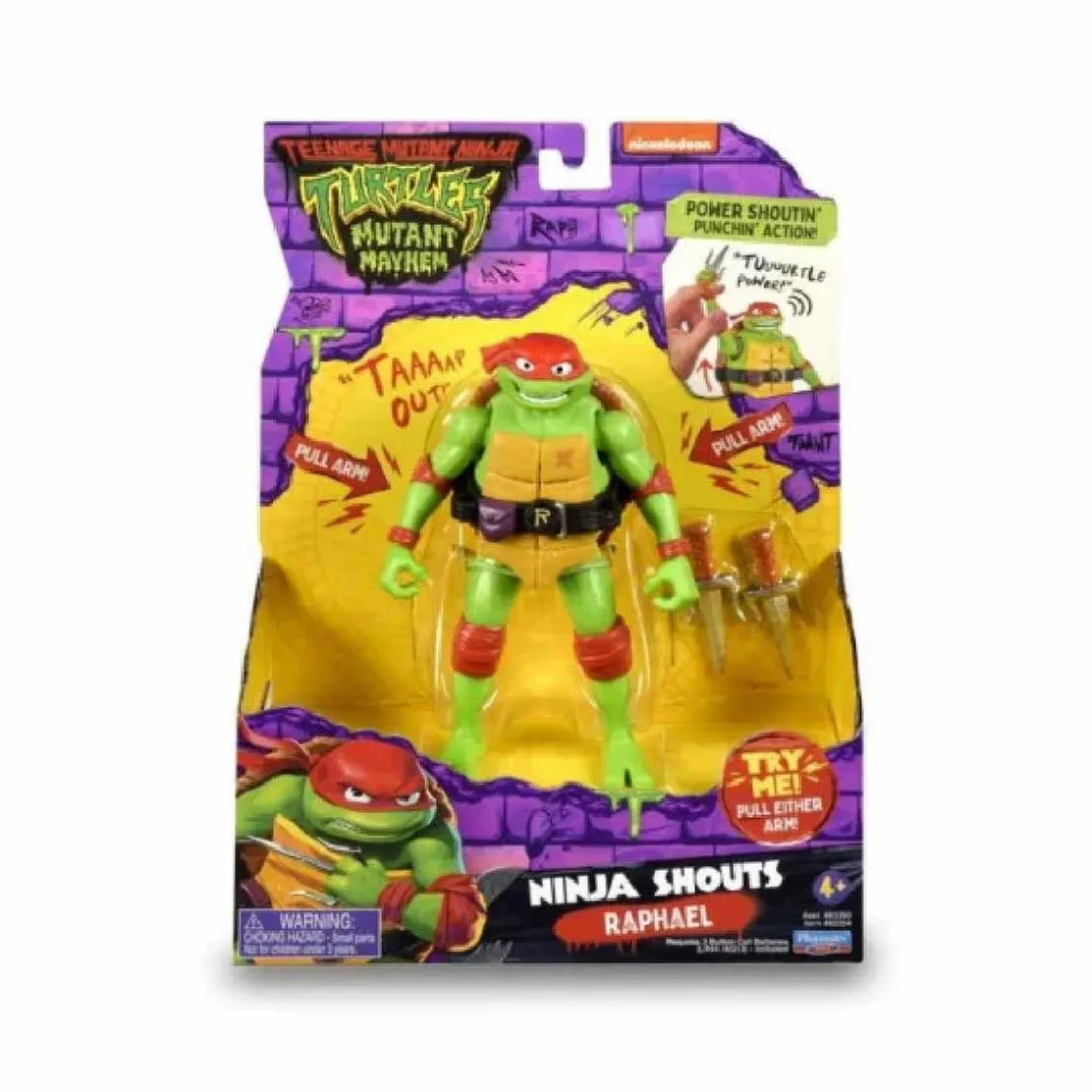 Las figuras de Leonardo, Rafael, Michelangelo y Donatello (se venden por separado) están totalmente articuladas y emiten sonidos al moverles la mano o la pierna. Cada una incluye sus accesorios de lucha.