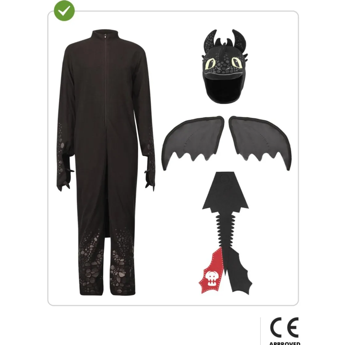El disfraz de Desdentado en talla 10-12 años permite a los pequeños fans de “Cómo entrenar a tu dragón” convertirse en el dragón más querido. Incluye mono negro ajustado, gorro con ojos y orejas, además de alas y cola desmontables que completan el look. El poliéster suave y resistente garantiza comodidad, mientras el diseño ligero facilita el movimiento. Las alas se colocan fácilmente y la cola añade dinamismo al conjunto. Perfecto para carnaval, teatro escolar o fiestas temáticas, este disfraz es fotogénico, duradero y fácil de mantener.