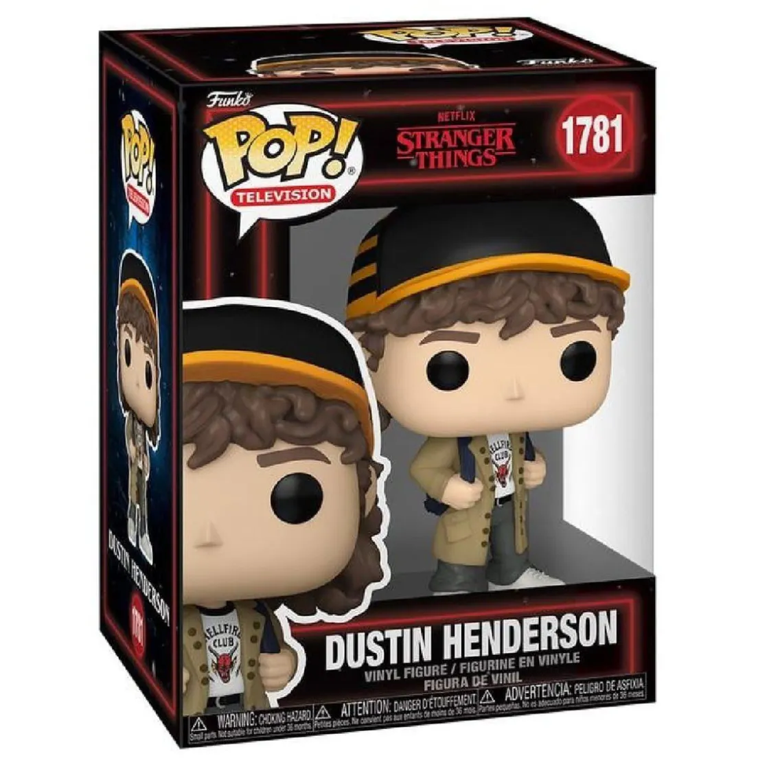 Dustin Henderson, el ingenioso y divertido miembro de los Hawkins Gang, llega en versión Funko Pop! Vinyl. Esta figura captura su característico look de la serie, incluyendo su gorra y mochila, listo para enfrentarse a misterios del Mundo del Revés y acompañar a sus amigos en épicas aventuras.