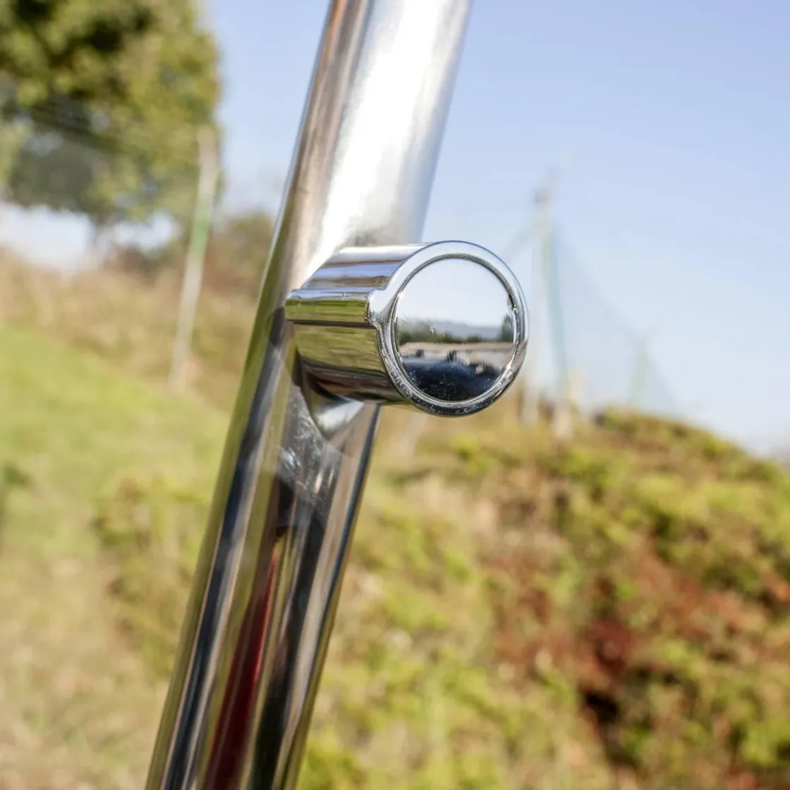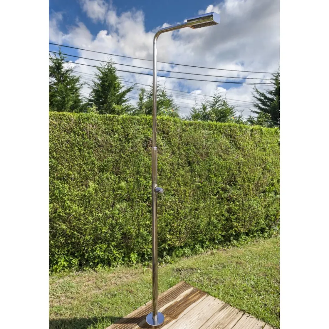 Ducha de acero inoxidable, una ducha de acero inoxidable que se integra perfectamente en el jardín.