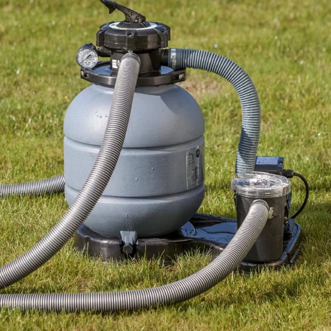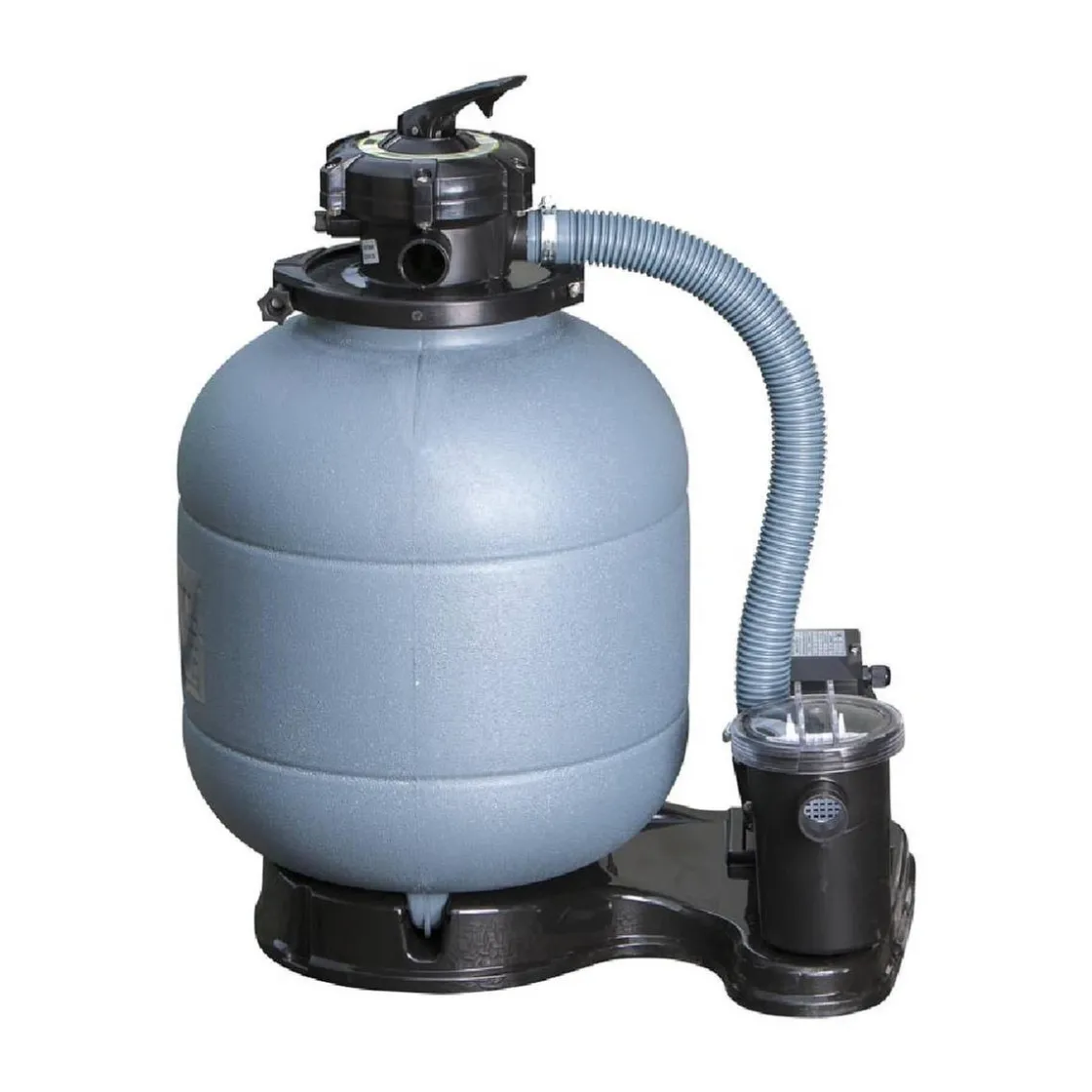 - Filtro de arena de 6 m³/h con 5 válvulas y potencia de 230W.