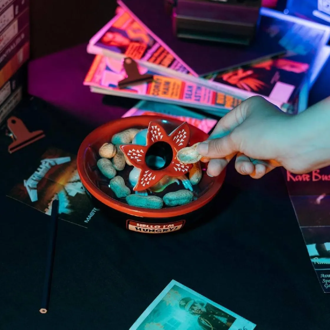 El Cuenco Demogorgon de Stranger Things es un recipiente temático para servir snacks y aperitivos con estilo. Inspirado en la popular serie, combina diseño original y funcionalidad para hacer más divertidas las reuniones con amigos o familia.