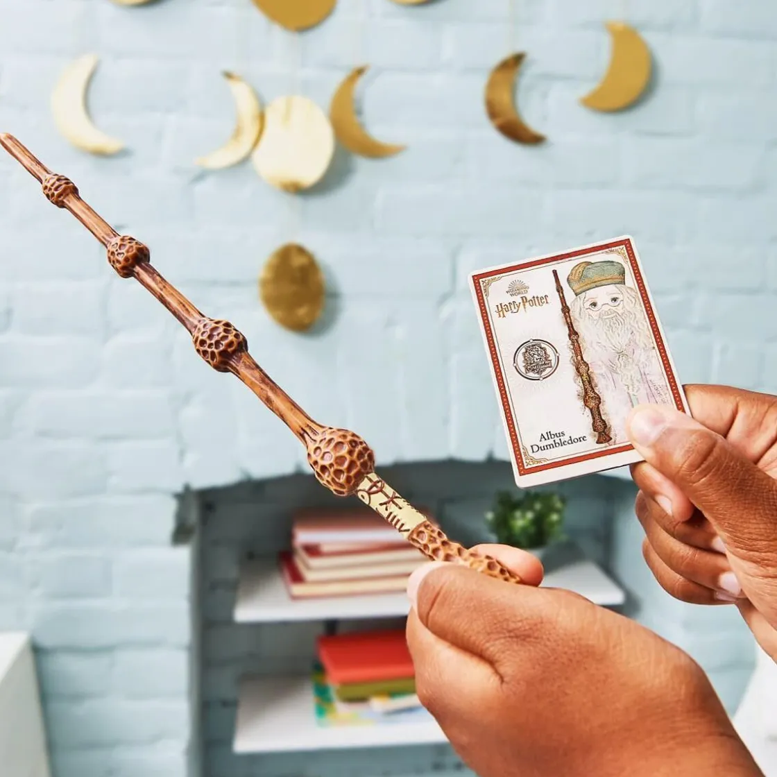Esta varita mide 30 cm aproximadamente, incluye 1 tarjeta de hechizos y es una réplica de la que Albus Dumbledore tiene en las películas de Harry Potter.