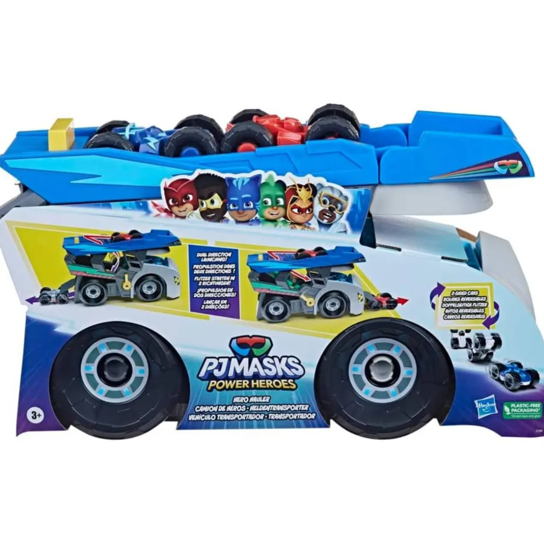 PJ Masks – Vehículo transportador, vehículo transportador de los coches de los PJ Masks, con lanzador delantero y trasero.