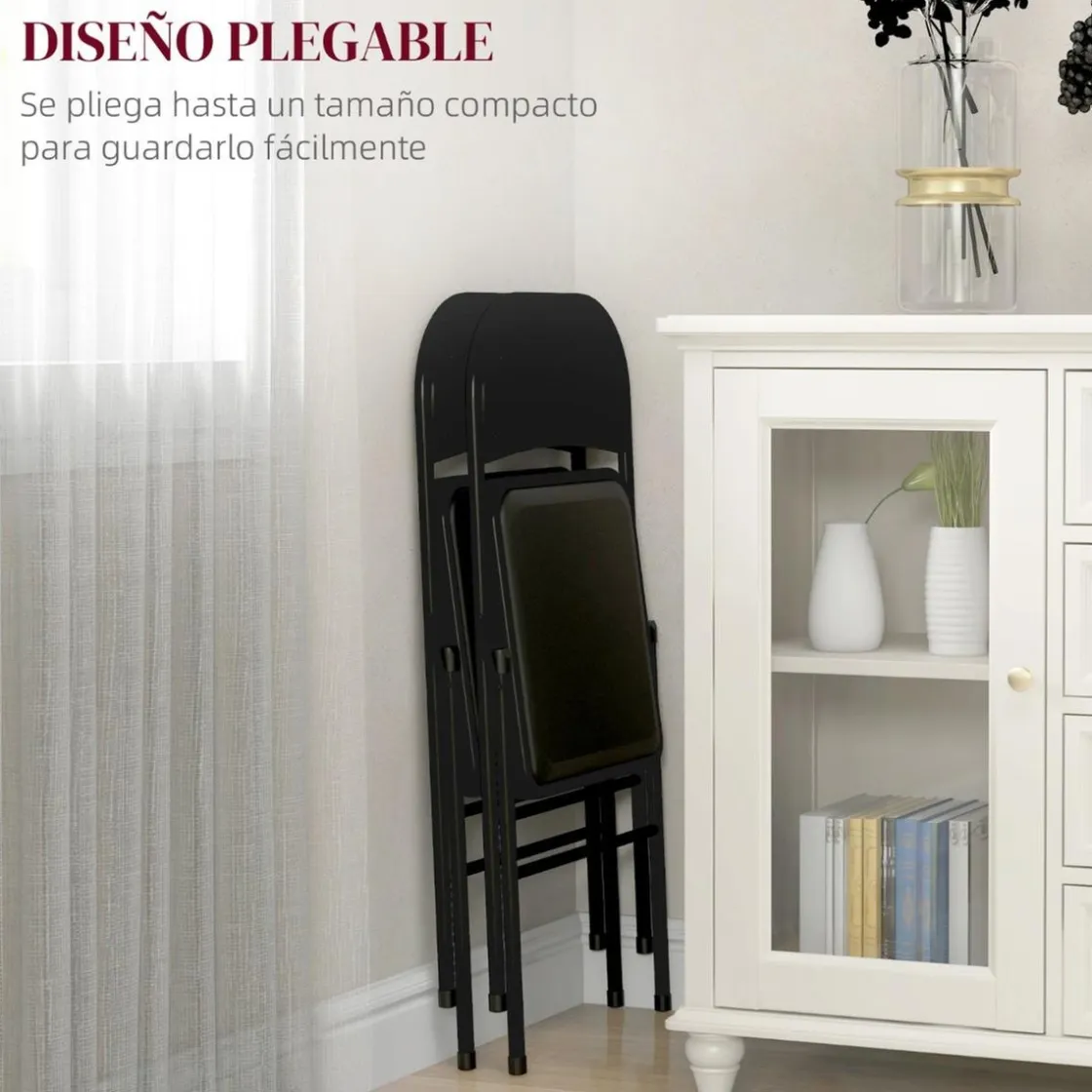 Estas sillas plegables de color negro de HOMCOM destacan por su diseño y comodidad. Con estructura metálica resistente, cada una de ellas soporta hasta 120 kg.