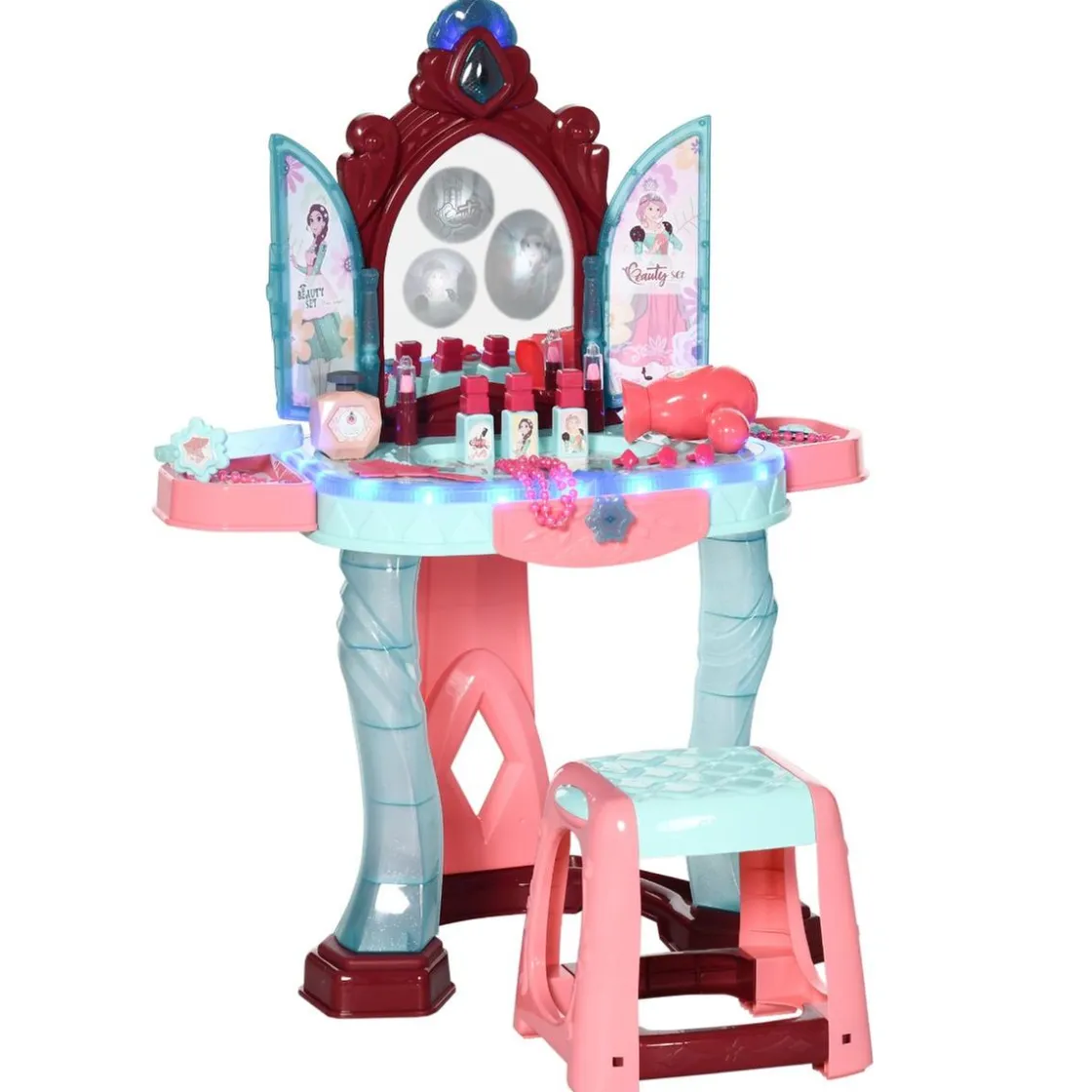 Aiyaplay – Tocador con taburete, un divertido tocador con un espejo mágico y muchos accesorios.