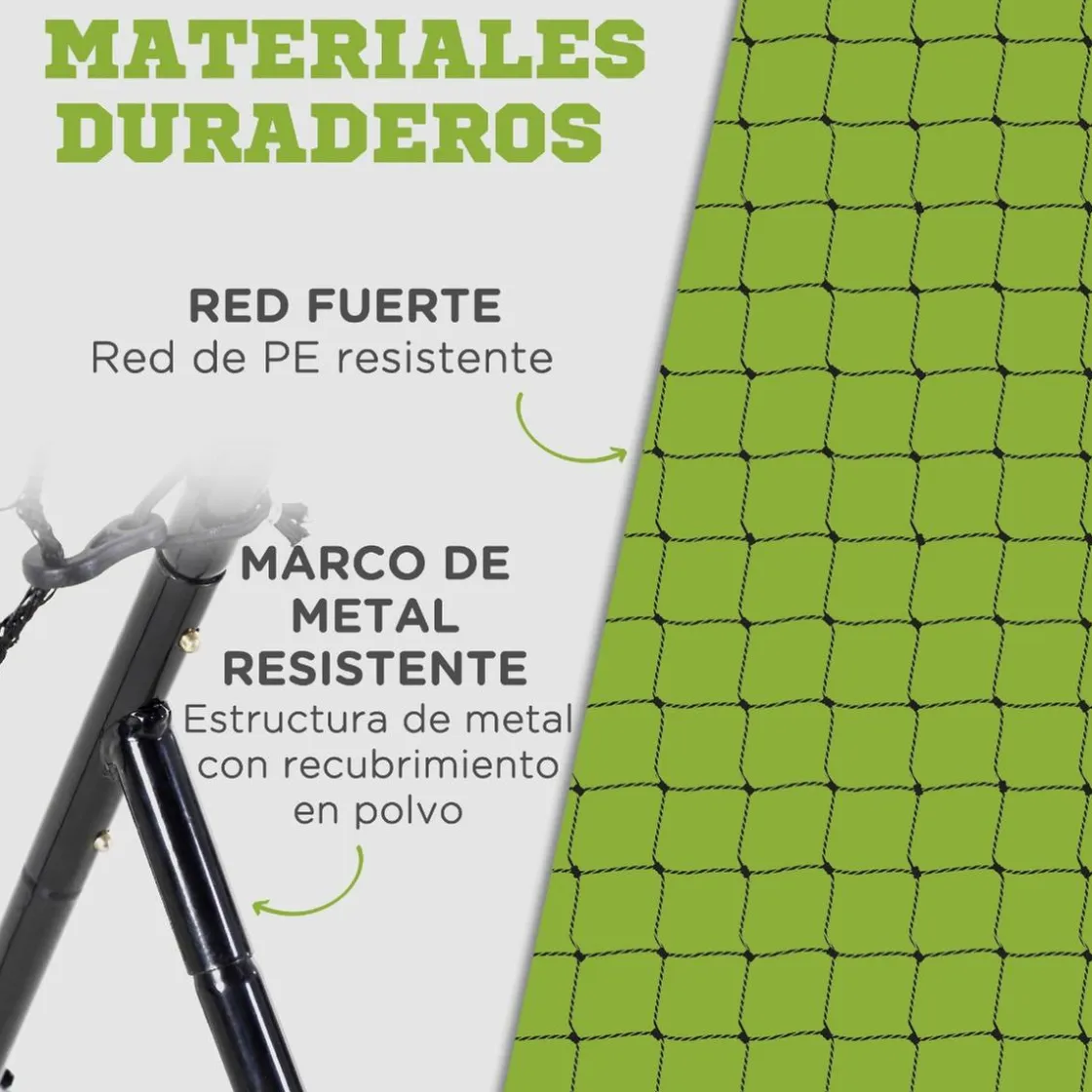 - Red resistente, fija al marco con 21 cordones elásticos que absorben los impactos.
