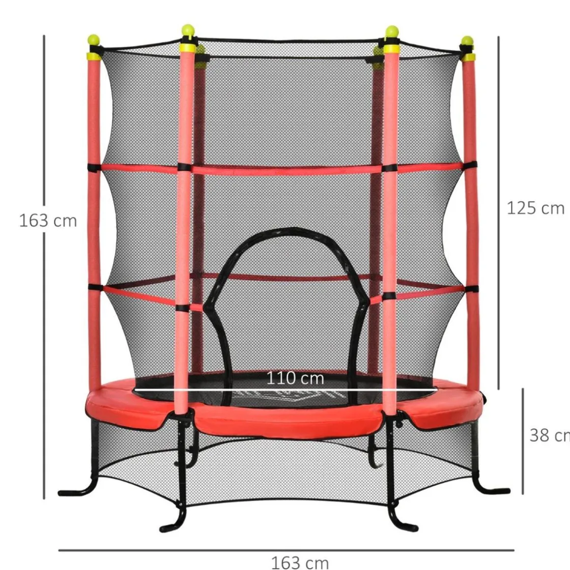 - Altura de la cama elástica desde el suelo: 38 cm