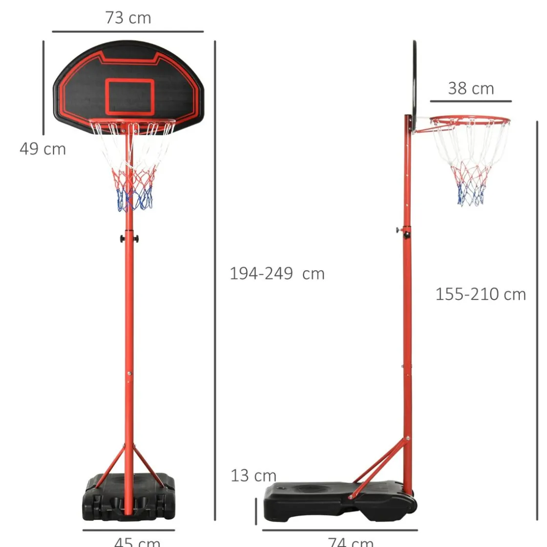 Homcom – Canasta baloncesto ajustable con base. ¿Buscas una canasta de baloncesto para divertirte con la familia y amigos? La canasta con soporte es ideal para practicar deportes al aire libre. Con altura ajustable, puedes adaptar el aro a diferentes alturas y necesidades. Además, es resistente, con un poste de acero y una base robusta que puedes rellenar con agua o arena para mayor estabilidad. Perfecta para mejorar la interacción con tus hijos y hacer ejercicio al mismo tiempo.