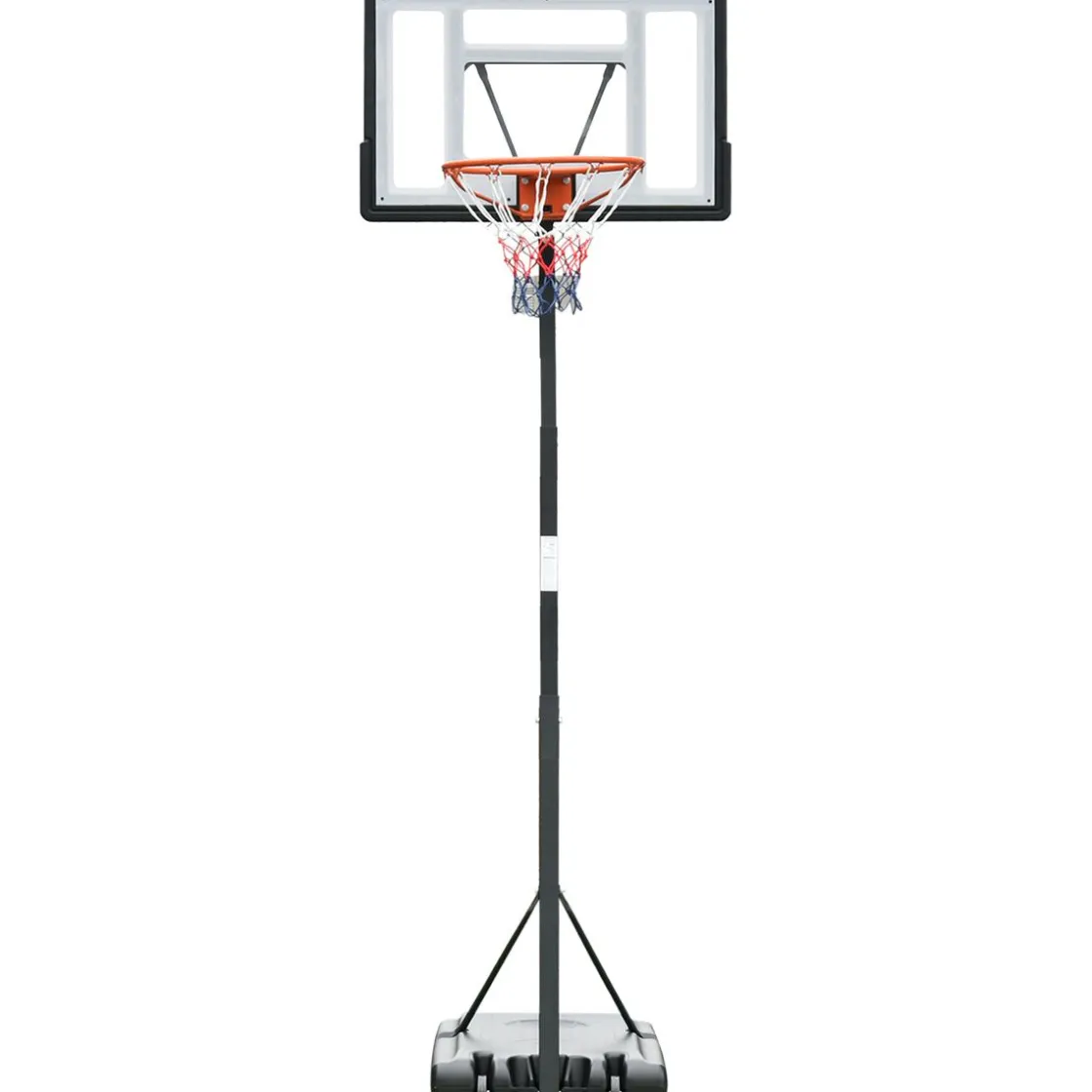 - Resistente y duradera. Es una canasta de baloncesto resistente y duradera para un uso prolongado construido con un poste de acero, red de nylon resistente a la intemperie, tablero de PVC y base de PE rellenable.