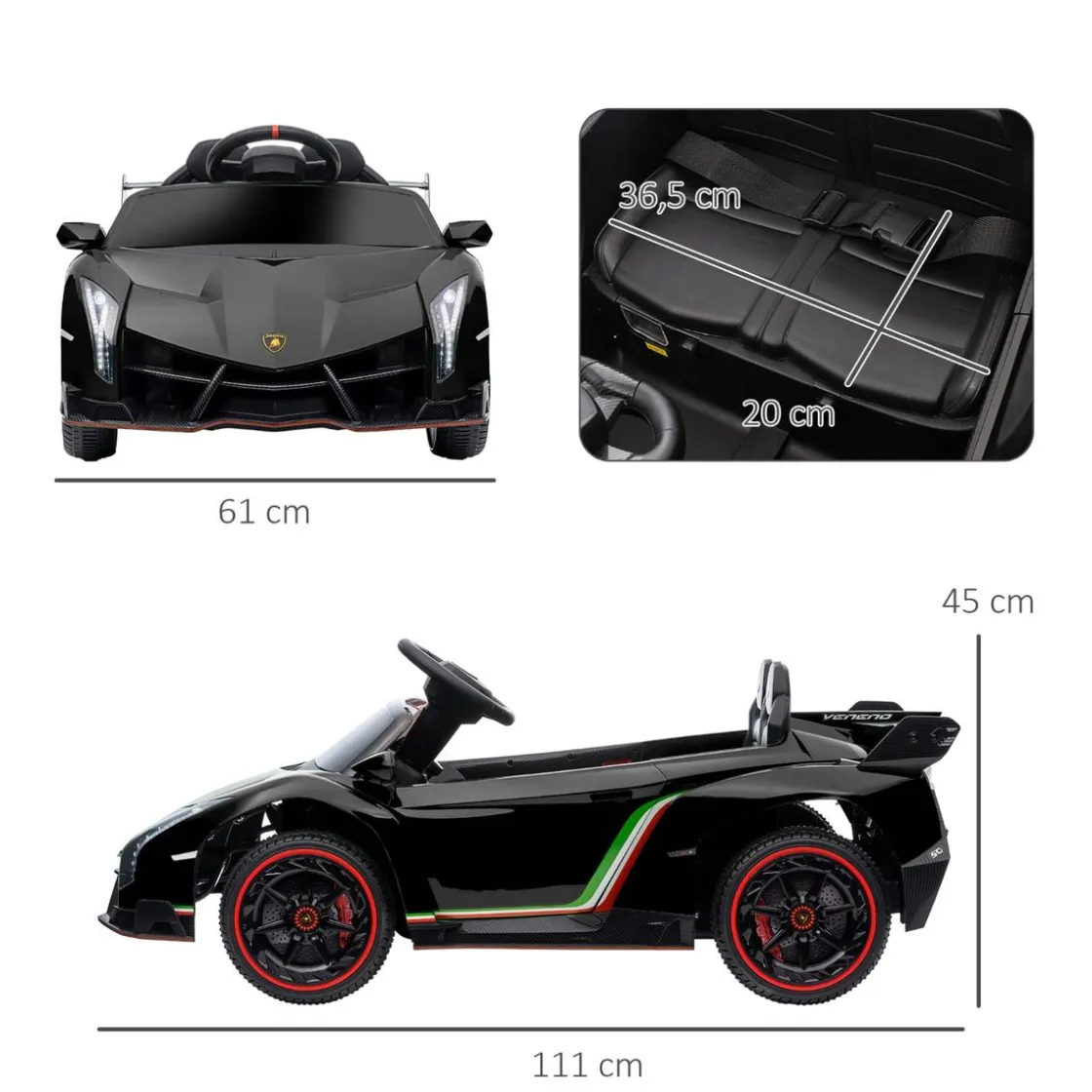 ¿Estás buscando un vehículo eléctrico infantil para tus hijos? ¡Mira qué bonito es este Lamborghini Veneno de HOMCOM! Tiene soporte para USB y MP3, Bluetooth, además de 5 canciones preinstaladas, faros delanteros y traseros y neumáticos anchos. Además, puede ser conducido por los niños desde el volante del automóvil o por un adulto a través del control remoto incluido.