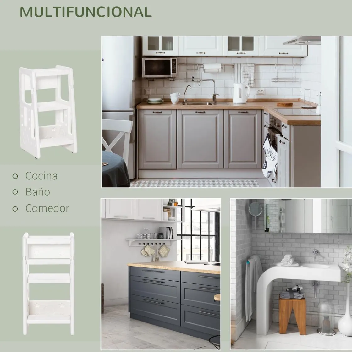- Peldaño superior ajustable en 3 posiciones diferentes, para adaptar a la altura de los niños.